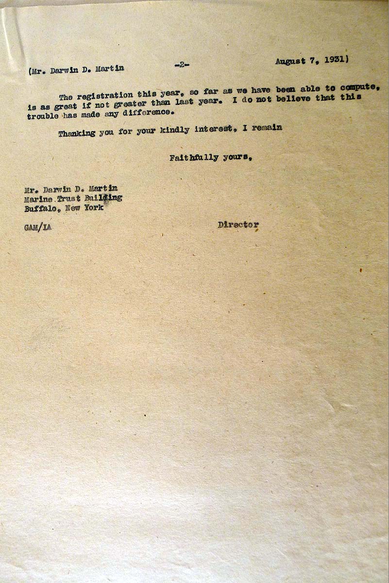 DARWIN D. MARTIN 1931 CORRESPONDENCE