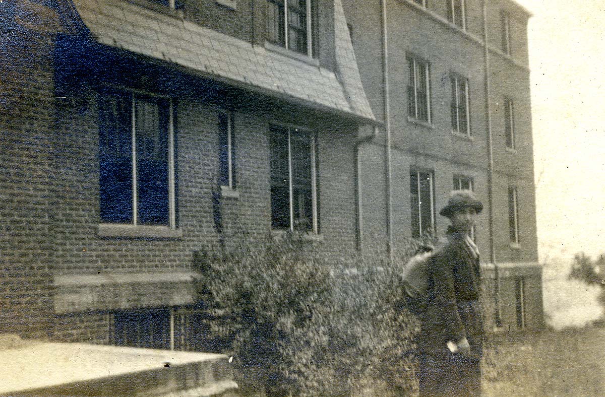 - Katherine True in front of Fairchild Hall, Berea ?? Katherine True Album, modified.