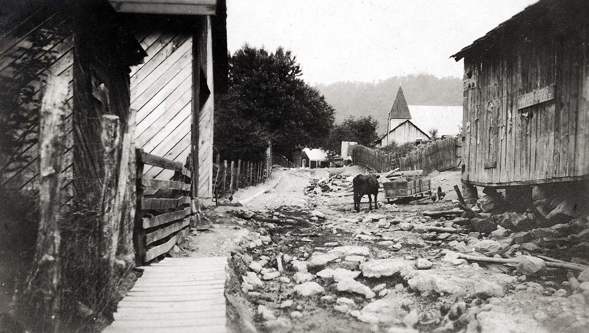 - “The Main Street at Hyden, County Seat of Leslie Co., June 18-19,” 1923. BC_3560 Kathrine True Album, modified.