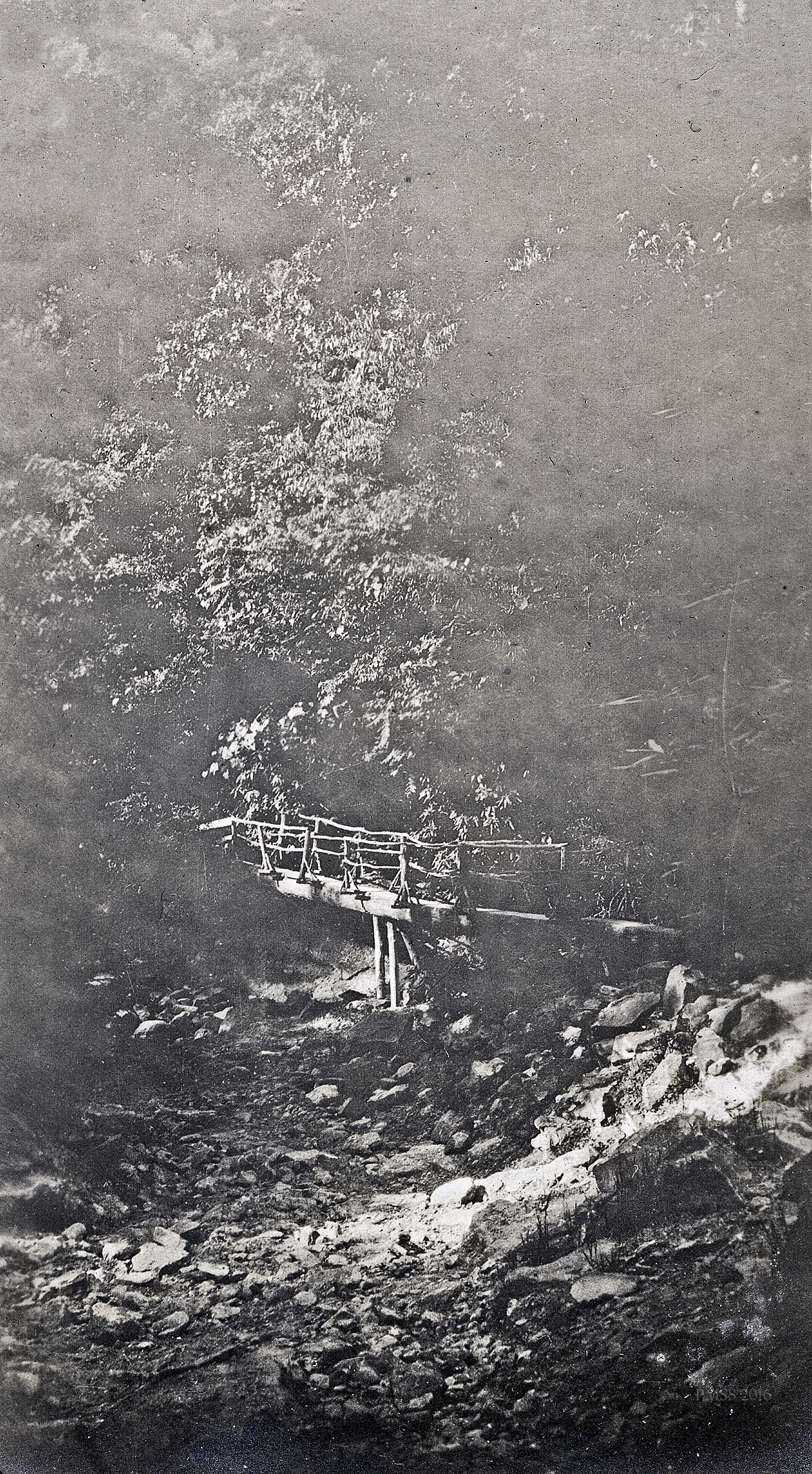 - “The Foot Log,” at Old Log, 1923. Kathrine True Album, modified.