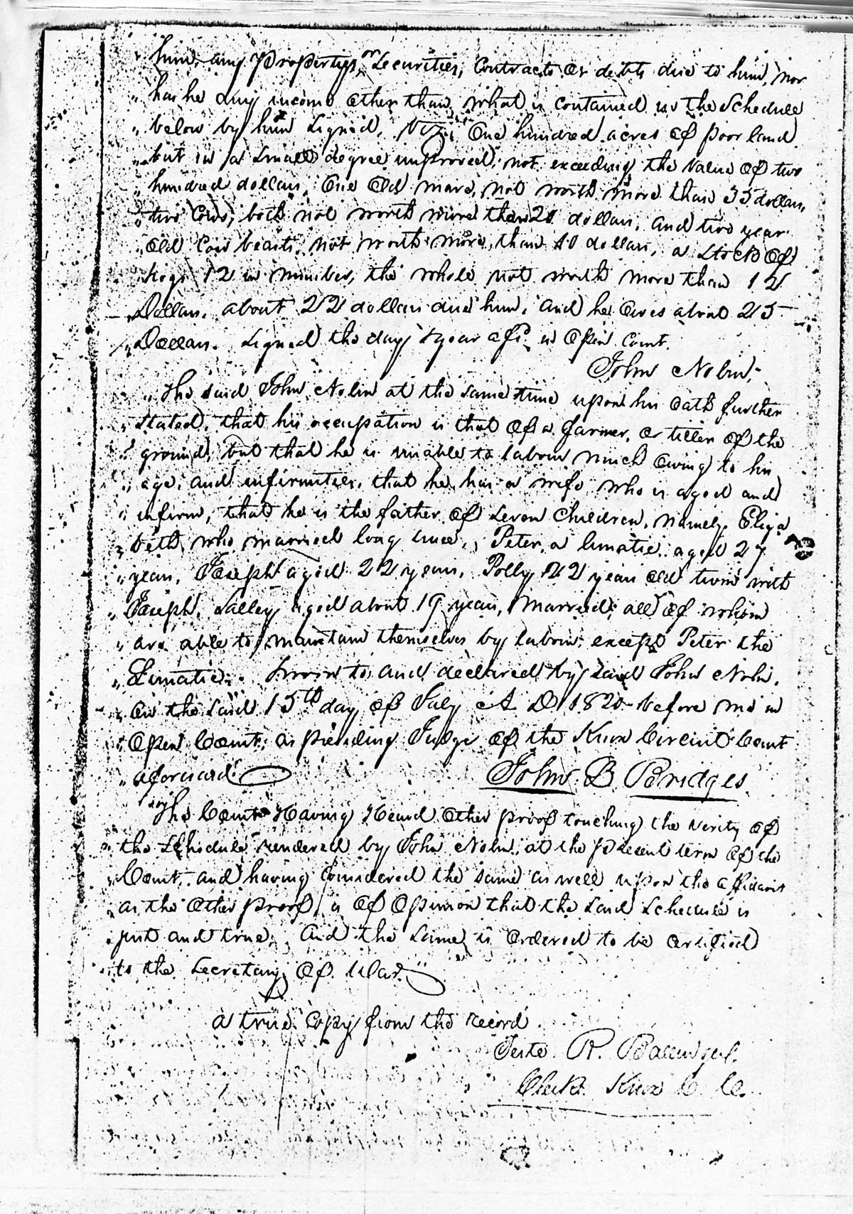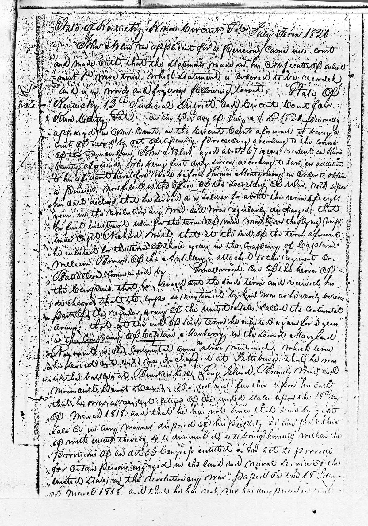07, page 1. Copy of John Nolan’s petition for a pension for his Revolutionary War service, July 12, 1820.