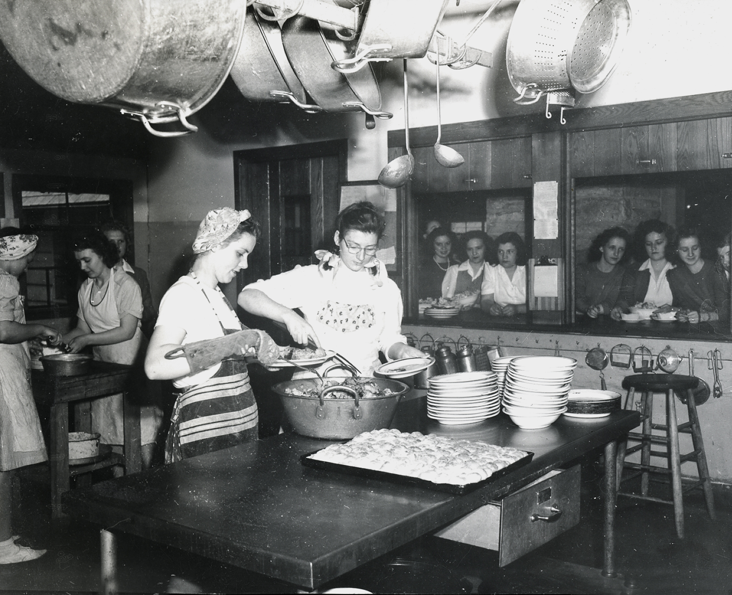 - Serving dinner: Louise Begeley, Nelle Jones, Vine Powell, Jeanette Lucas. [nace_1_060a.jpg]
