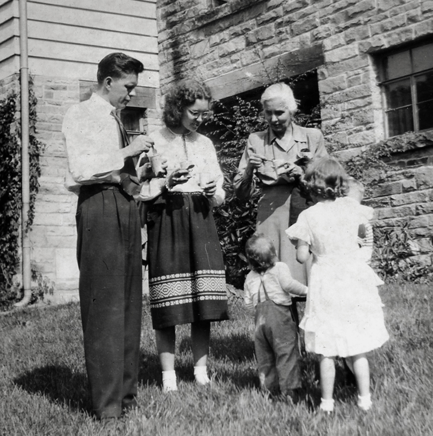- David, Alice, Roxanna, Frank, Pluto, Kathy, and Peter Barry, 1947. [nace_1_041c.jpg]