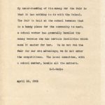 My understanding of the money for the Fair is that it has nothing to do with the School. The fair is held at the School because that is a handy place for the community to meet: a school worker has generally handled this only because she has certain facilities which make it easier for her. We do not run the fair for our own advantage; we do not enter the competitions, The local committee, with a school member, handles all the matters. [See image #5]