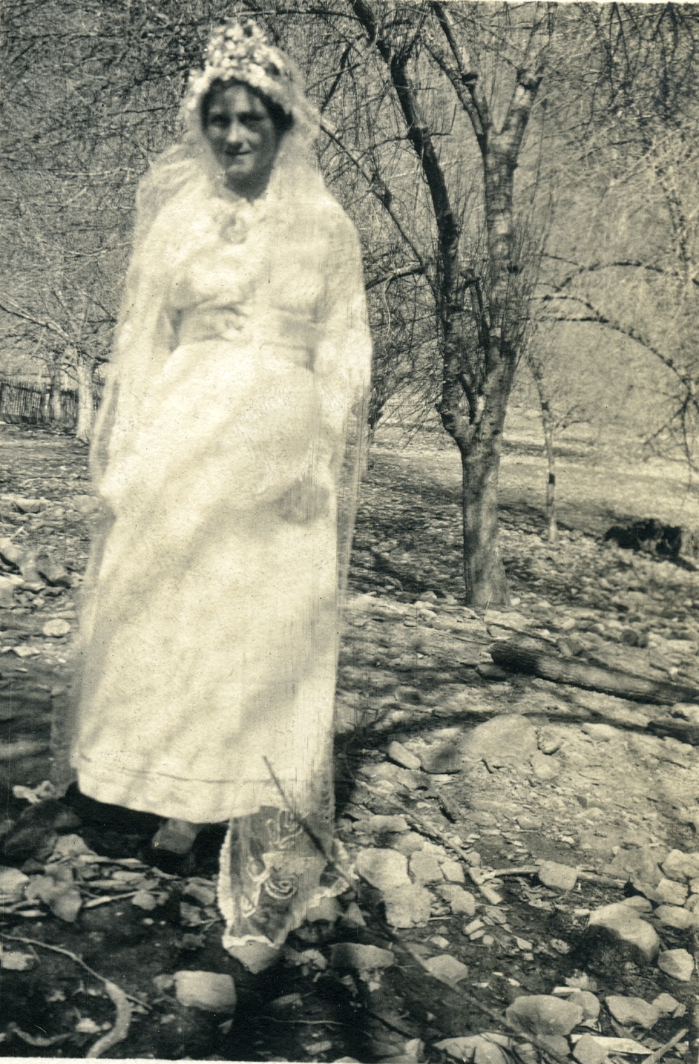 - 36 Friends & Neighbors : Bride, “Mary Ann Begley”, standing in wedding gown. Vl_34_1109_mod.jpg