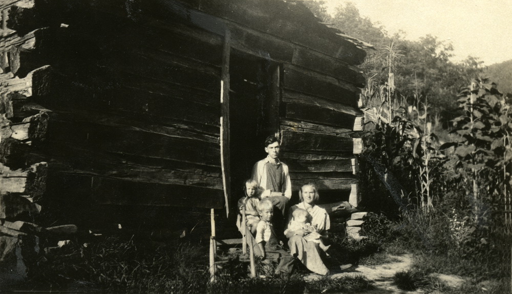 - 43 Friends & Neighbors : Man, woman, and children sitting on front steps of log house. Vl_34_1112c_mod.jpg