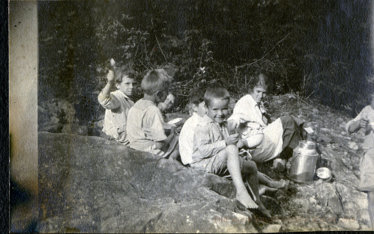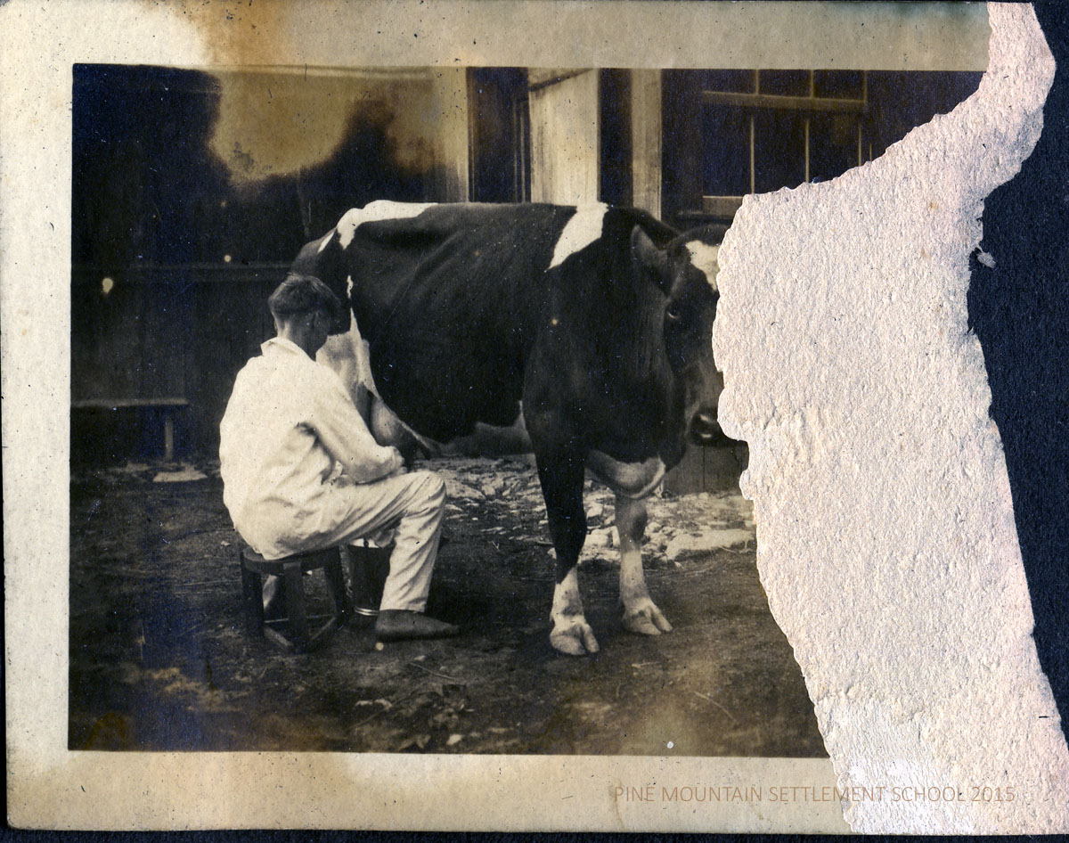 The album was donated to Pine Mountain Settlement School in June 2011 by Angela Melville’s niece, Ann Melville Wilson. The donation included the photograph album as well as newspaper clippings and a small booklet written by Angela Melville in 1957 for her nieces and nephews, called “Woodboo – 1957,” that describes her former home and life.