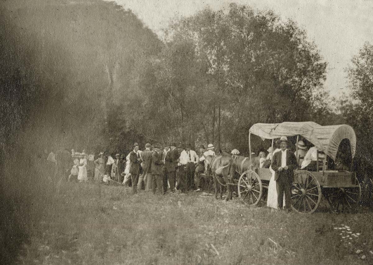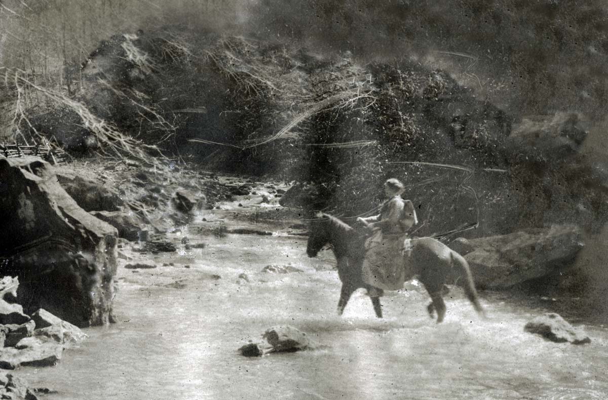 The condition of the photograph album is very poor. Many of the images were damaged by moisture and were adhered to one another or were badly stained or showed substantial emulsion-shift. Luckily, many of the damaged images are reproduced in other collections. Pine Mountain is beginning the process of restoration of many of the images and they are being placed alongside the damaged items in the various Parts I, II, III, etc. The online album will grow as it will now duplicate images in each Part. Please excuse the inconvenience as we shift images and add the new modified images.