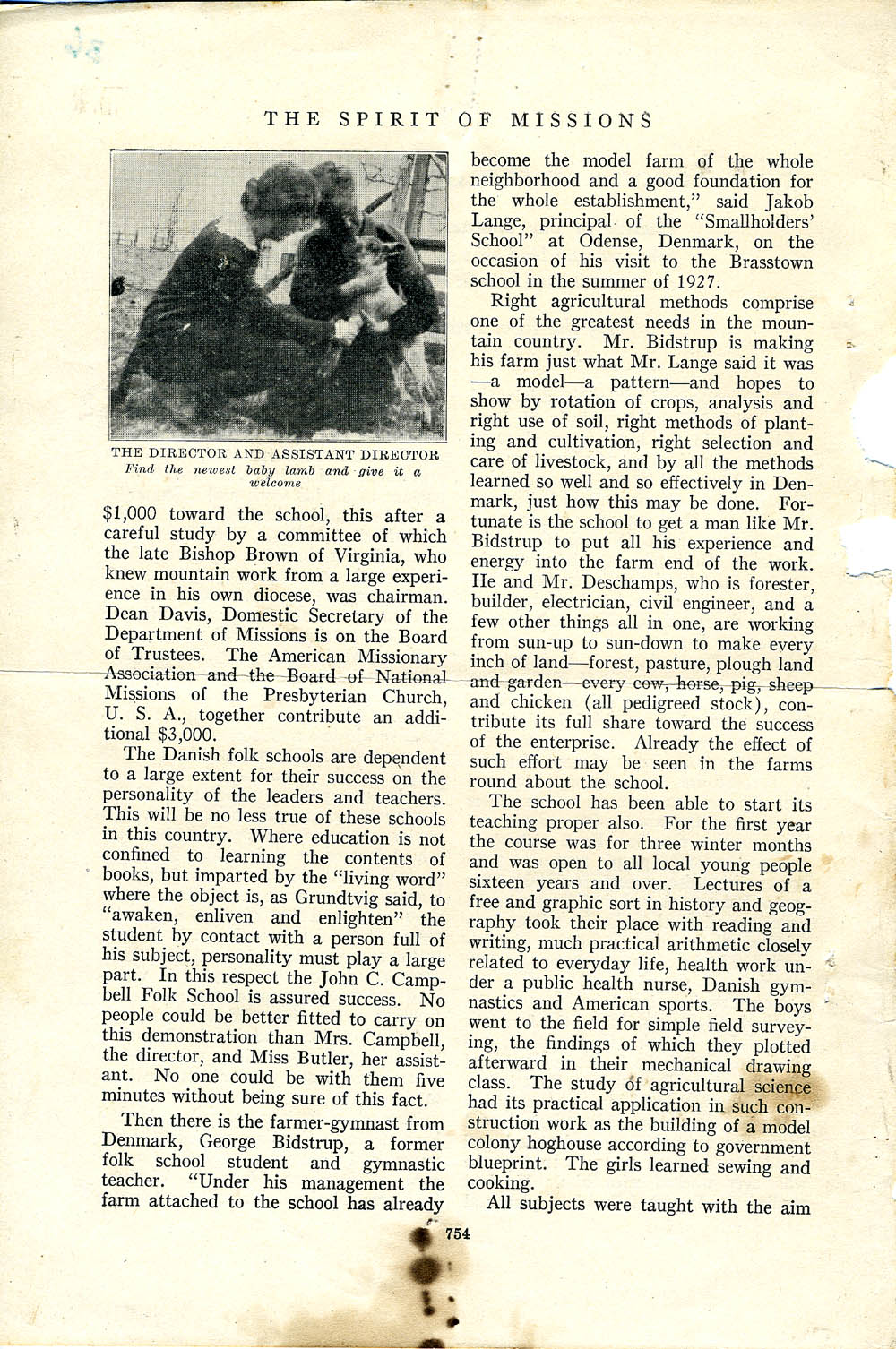 The following are images of an undated article, possibly reprinted from The Spirit of Missions, that was included in the Scrapbook Before 1929. The article was written by The Reverend Franklin J. Clark and titled “Folk Schools in the Southern Mountains.” It is subtitled, “Friends of our Southern Highlanders have followed the lead of a great Danish educator and established a Folk School at Brasstown.”