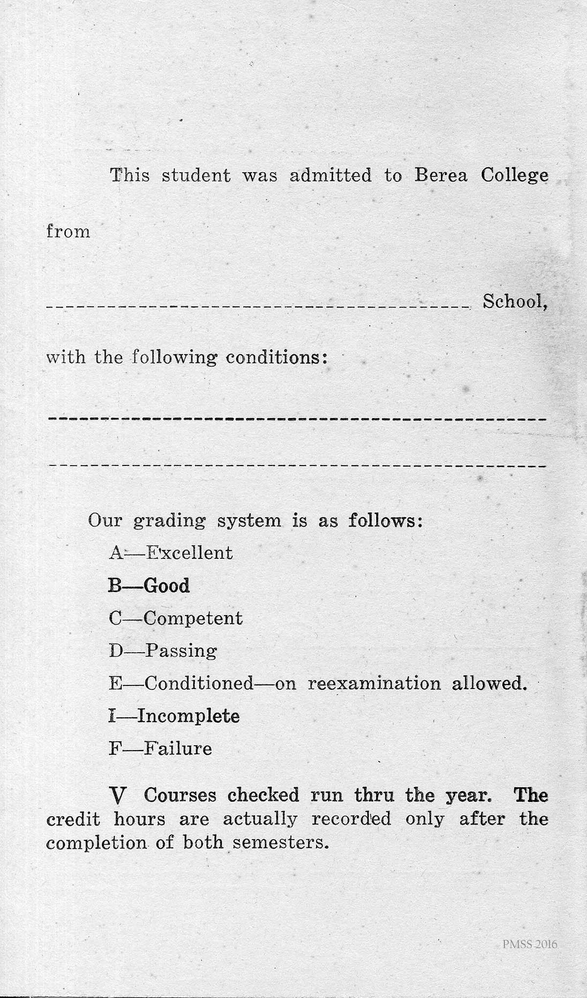 - Howard Family File. Berea College Scholarship Report for Nora Howard, 1927-28. [howard_fam_007a.jpg]