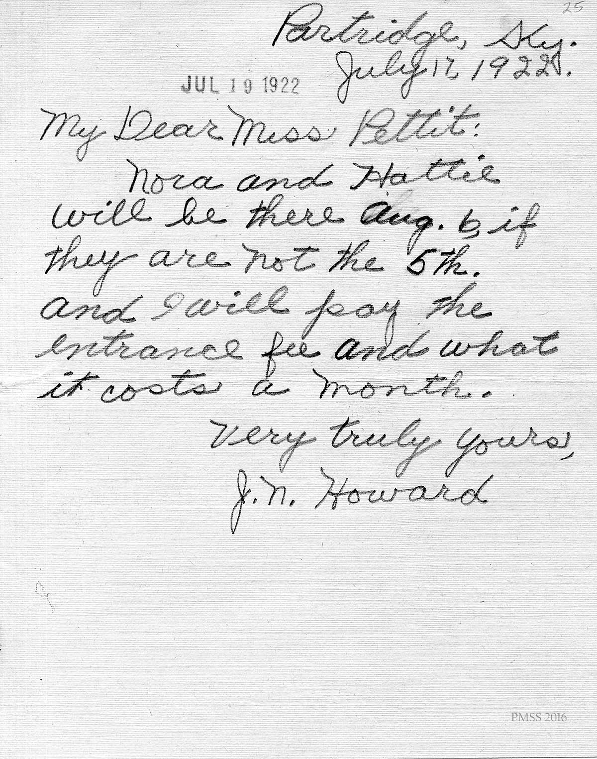 - Howard Family File. Notice of admittance to Berea College. [howard_fam_007b.jpg]
