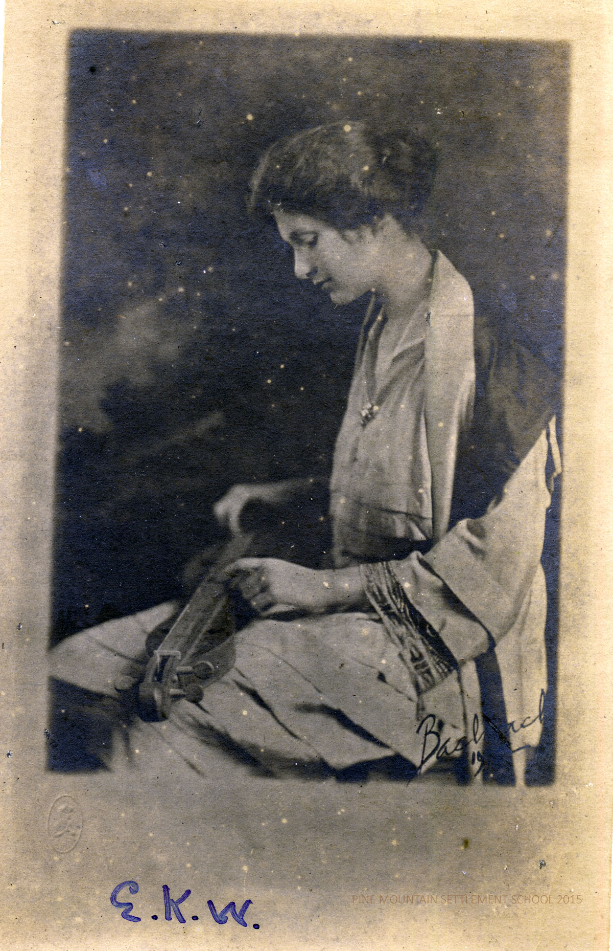 The album was donated to Pine Mountain Settlement School in June 2011 by Angela Melville’s niece, Ann Melville Wilson. The donation included the photograph album as well as newspaper clippings and a small booklet written by Angela Melville in 1957 for her nieces and nephews, called “Woodboo – 1957,” that describes her former home and life.
