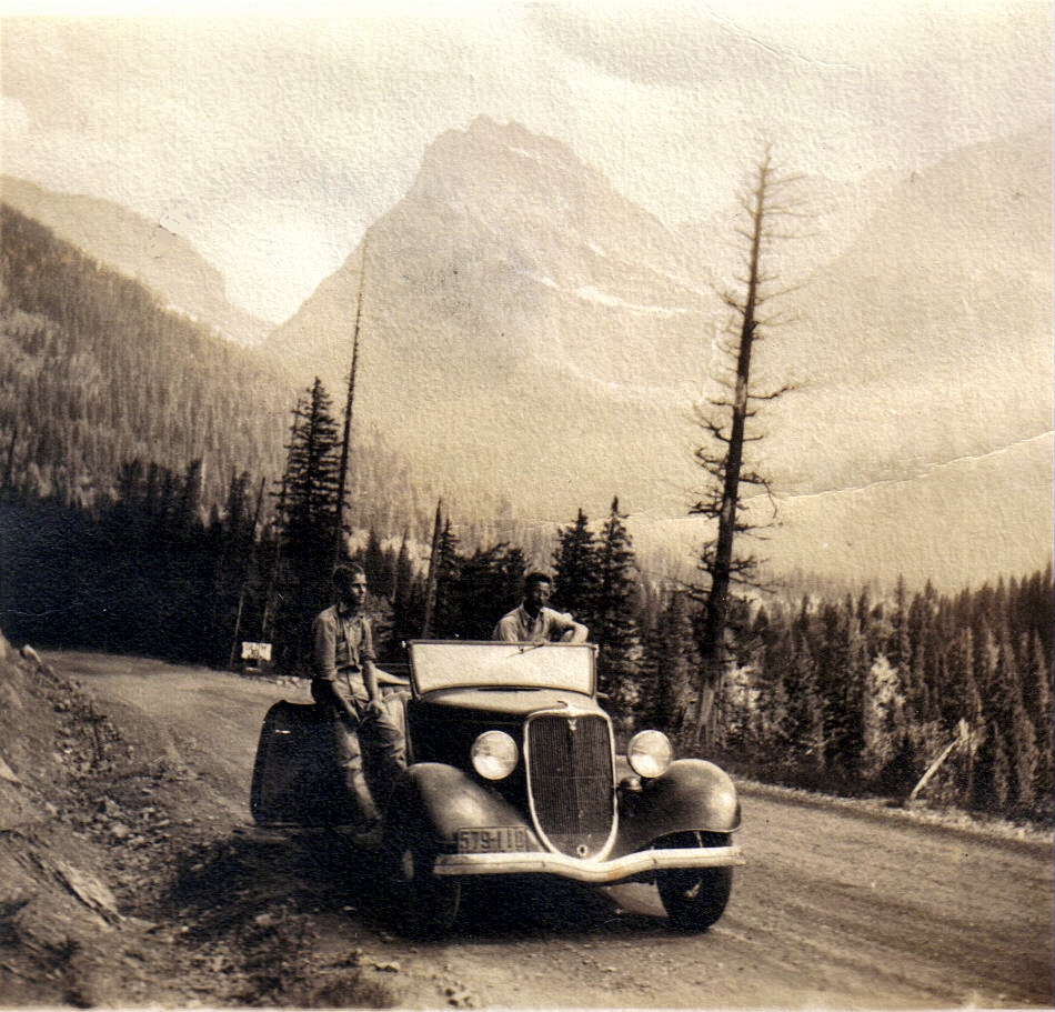 - On the Goin- to-the-Sun Road, Glacier National Park, MT, 1935. [pmss_shera_parks1-car.jpg]