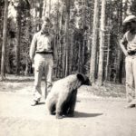 - Caleb Shera and August Angel encounter a bear at Yellowstone National Park, WY, 1935. [pmss_shera_parks2-bear.jpg]