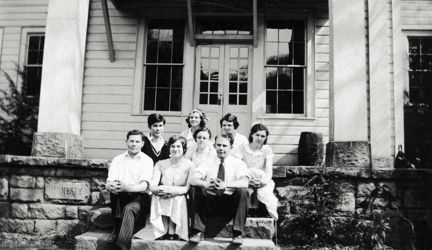 - Students and staff on steps of Burkham School House II. Katherine Pettit Album I.
