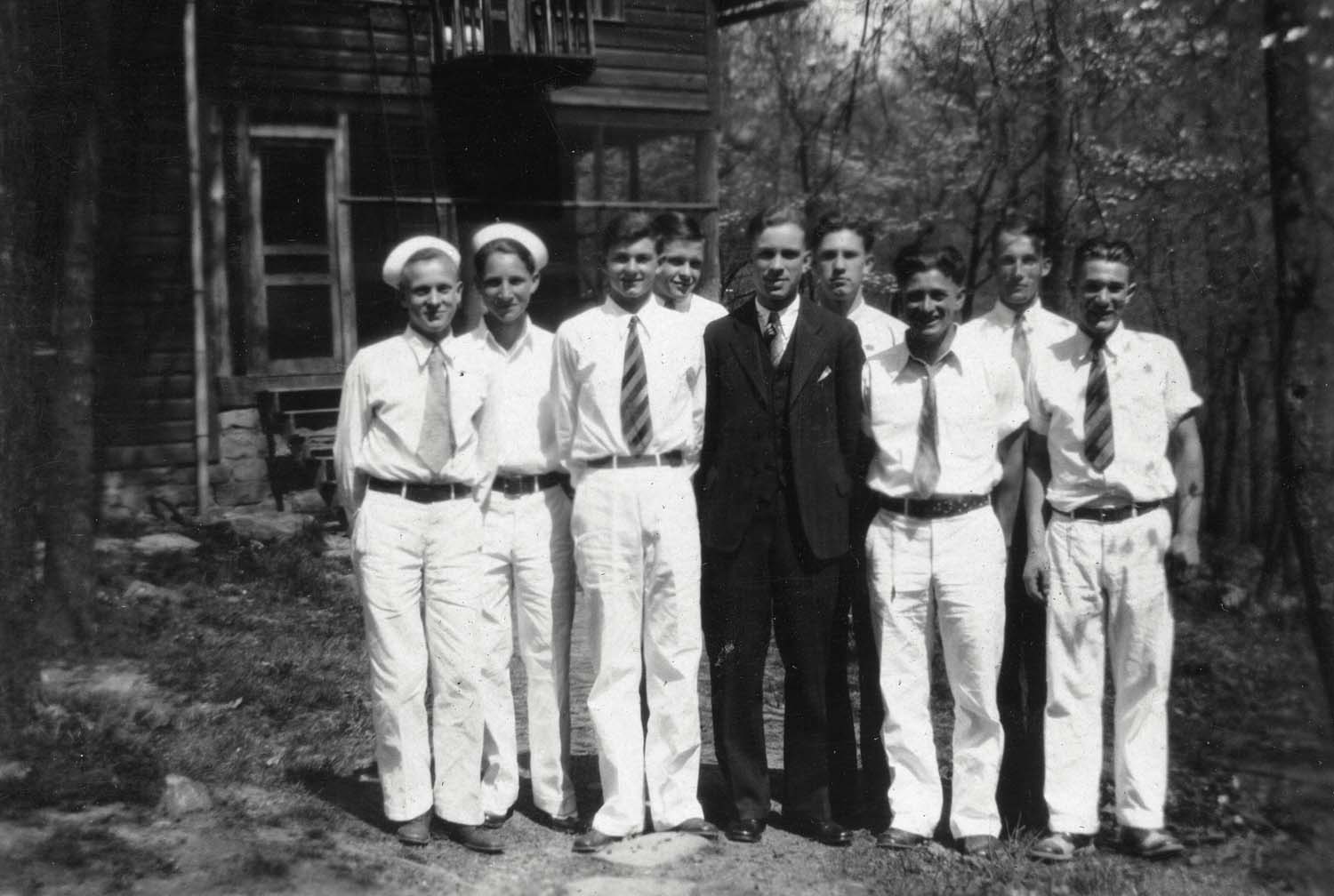 - Boys from Boy’s House, seated on steps. Brit Wilder with ball on lower step. Katherine Pettit Album I. [pettit_31_004-2.jpg]