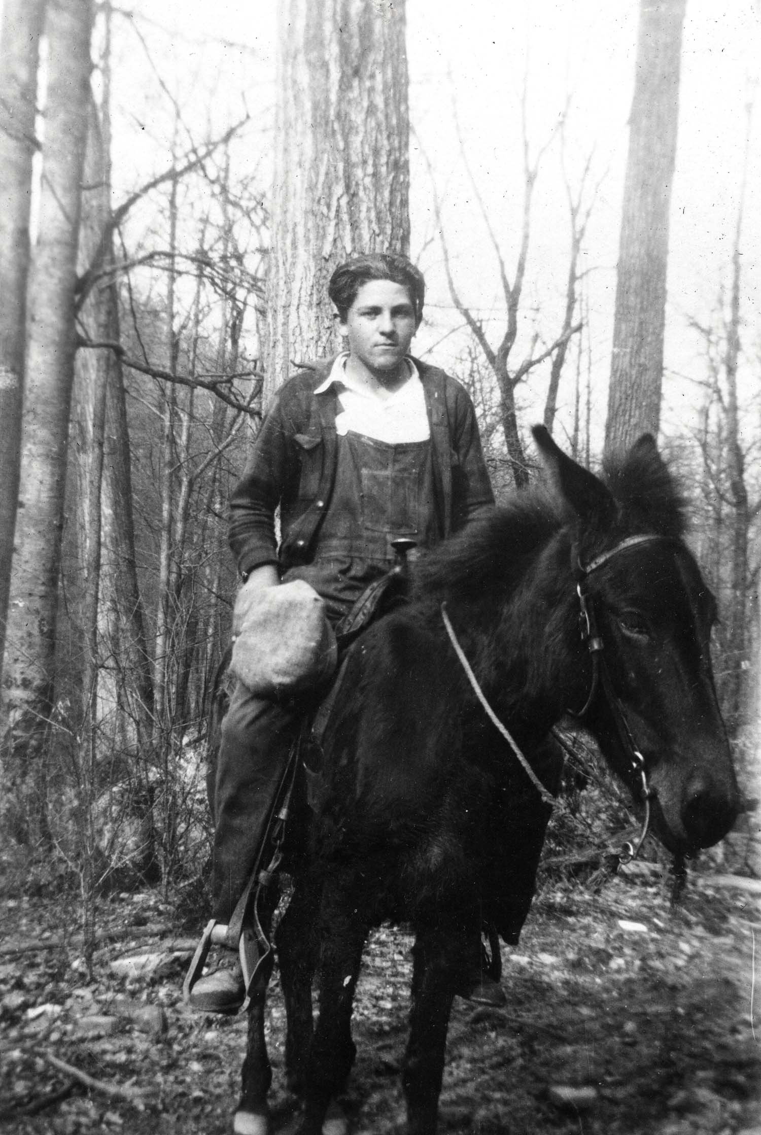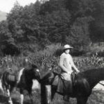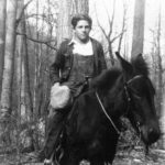 - Woman {Pettit ?] on horseback on trail. Katherine Pettit Album I.