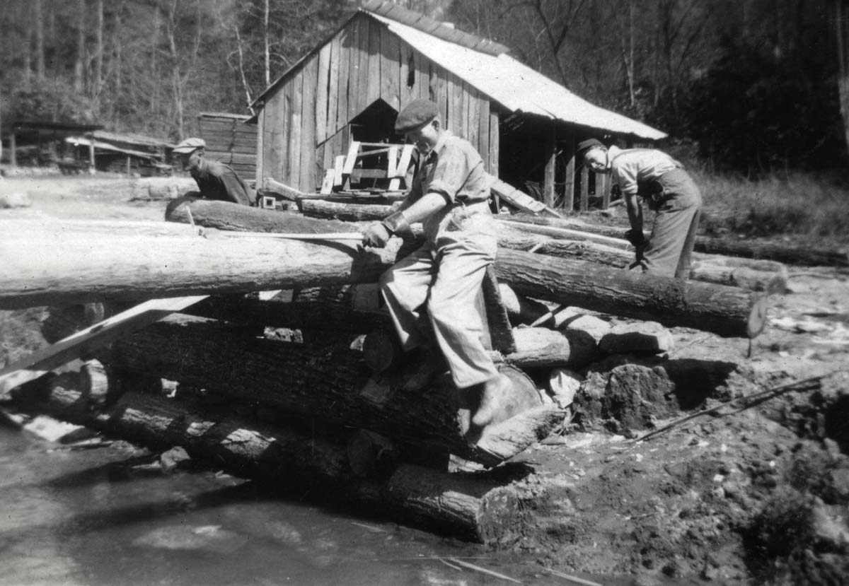 - Building bridge across Isaac’s Creek to Saw Mill. Katherine Pettit Album I.