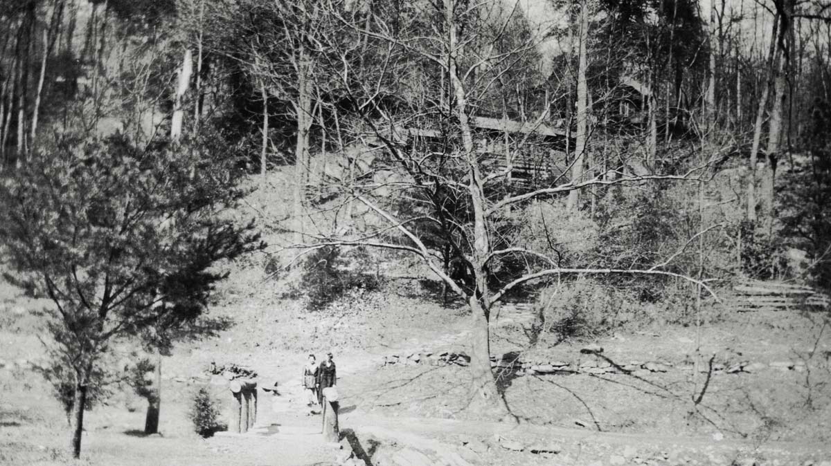 - Students on bridge across Isaac’s Creek. Girl’s Industrial in back. Katherine Pettit Album I.
