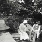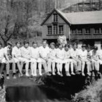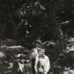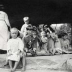 - Students seated on bridge across Isaac’s Creek. Katherine Pettit Album I.