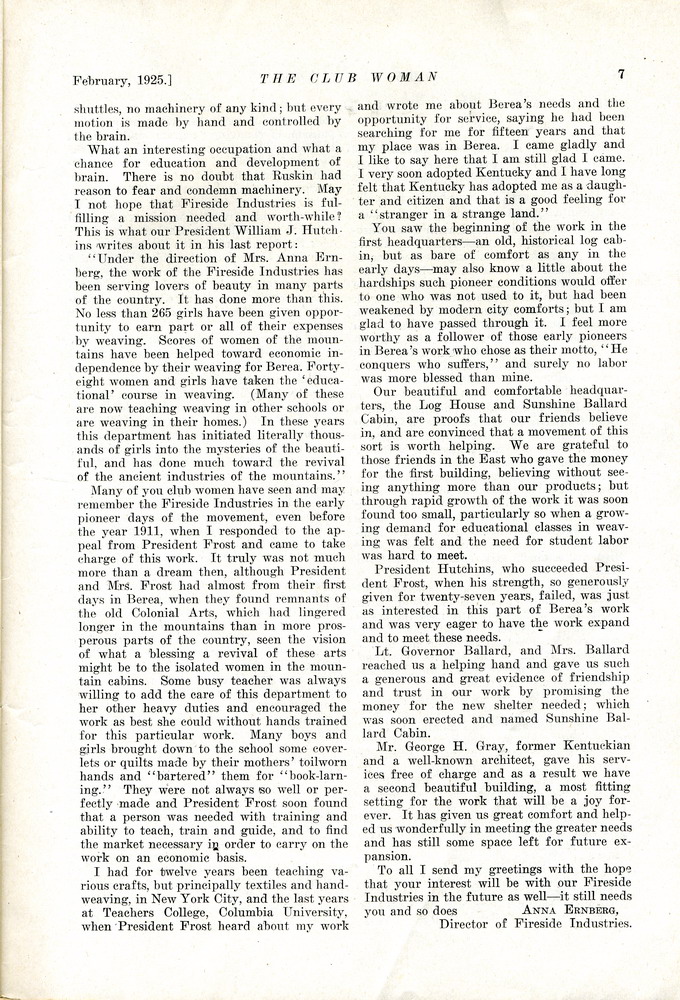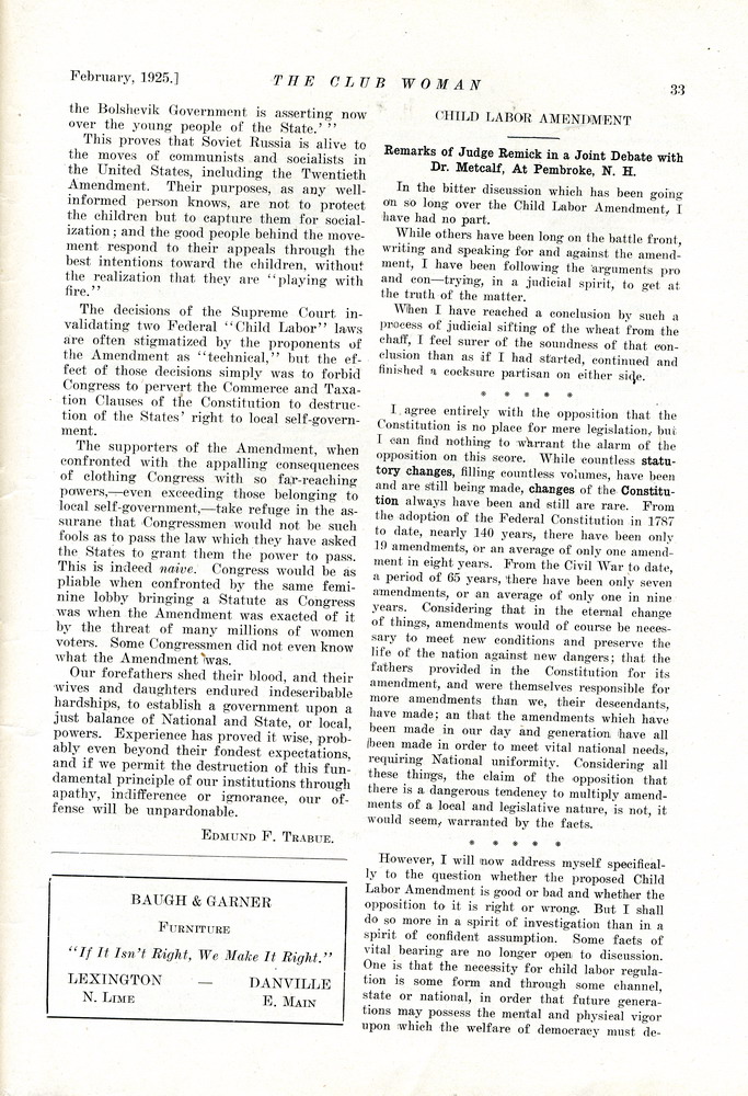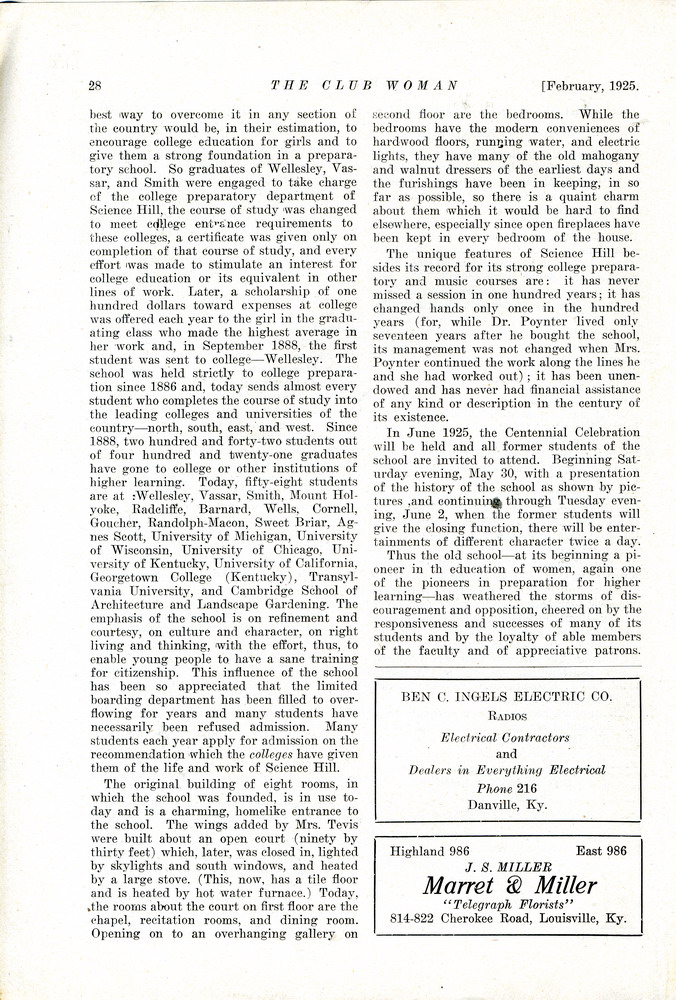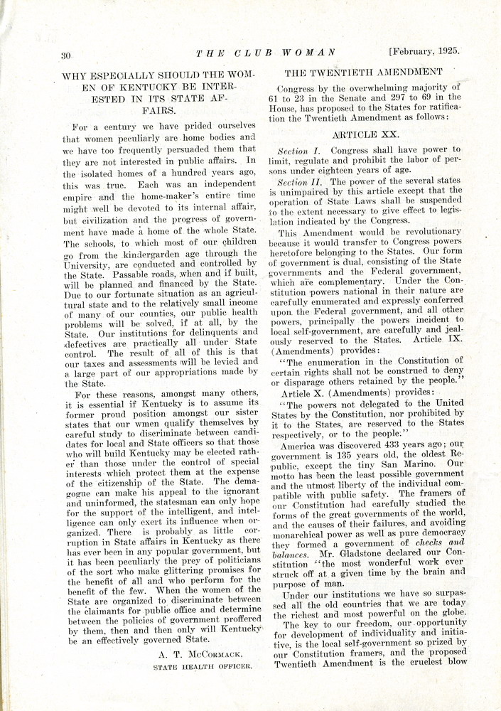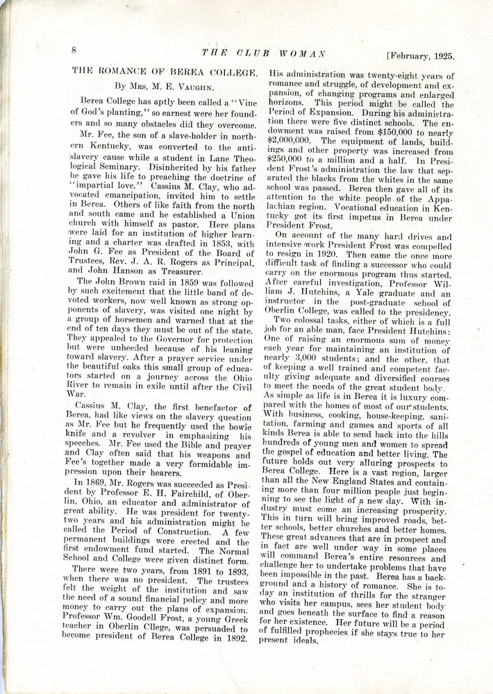 TAGS: The Club Woman – KY Federation of Women’s Clubs 1925; Echo Club; Progress Club; Berea Women’s Club; Fireside Industries; Berea College; Columbia Woman’s Club; Mark Twain; Club Women; Education; Crab Orchard Woman’s Club, Woman’s Club of Danville; Kentucky College for Women; Harrodsburg Woman’s Club; Lancaster Woman’s Club; Lawrenceburg Pierian Club; Jessamine Woman’s Club; Richmond Woman’s Club; Madison County; Shelbyville Woman’s Club; Science Hill School; Stanford Woman’s Club; St. Asaph’s or Logan’s Fort; The Twentieth Amendment; Child Labor Amendment; Robert’s Rules