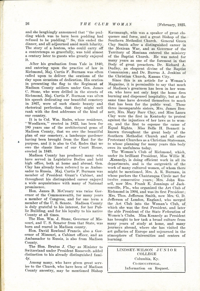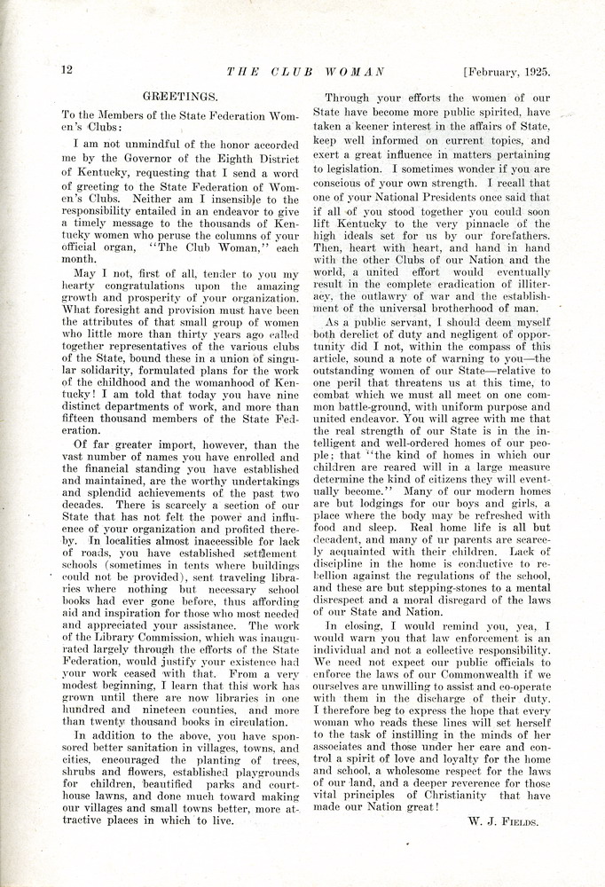 THE CLUB WOMAN – KY FEDERATION OF WOMEN’S CLUBS 1925