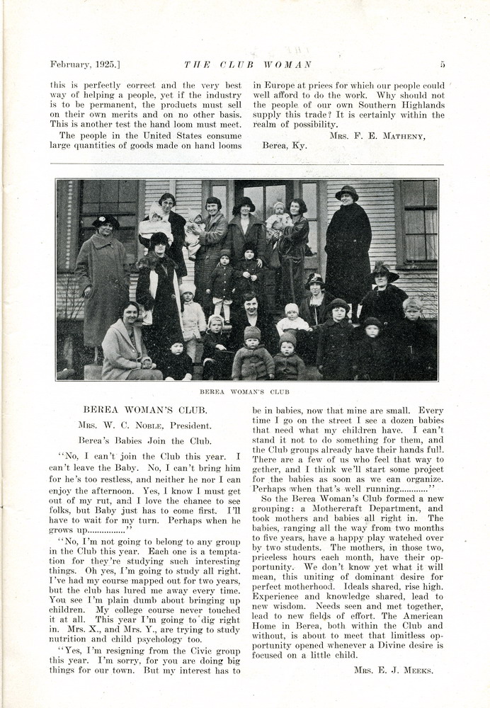 Berea Women’s Club, Mrs. W.C. Noble, President