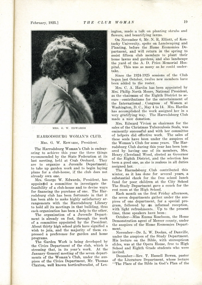 Harrodsburg Woman’s Club, Mrs. G.W. Edwards, President