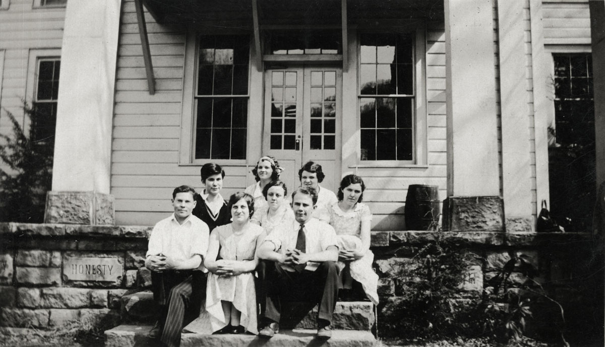 - Students in front of Office. Harold Reynolds, far right [?] (cobb_alice_002x.jpg]