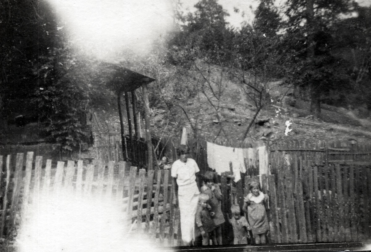 - Woman, clothesline, paling fence and 4 children. cobb_alice_079