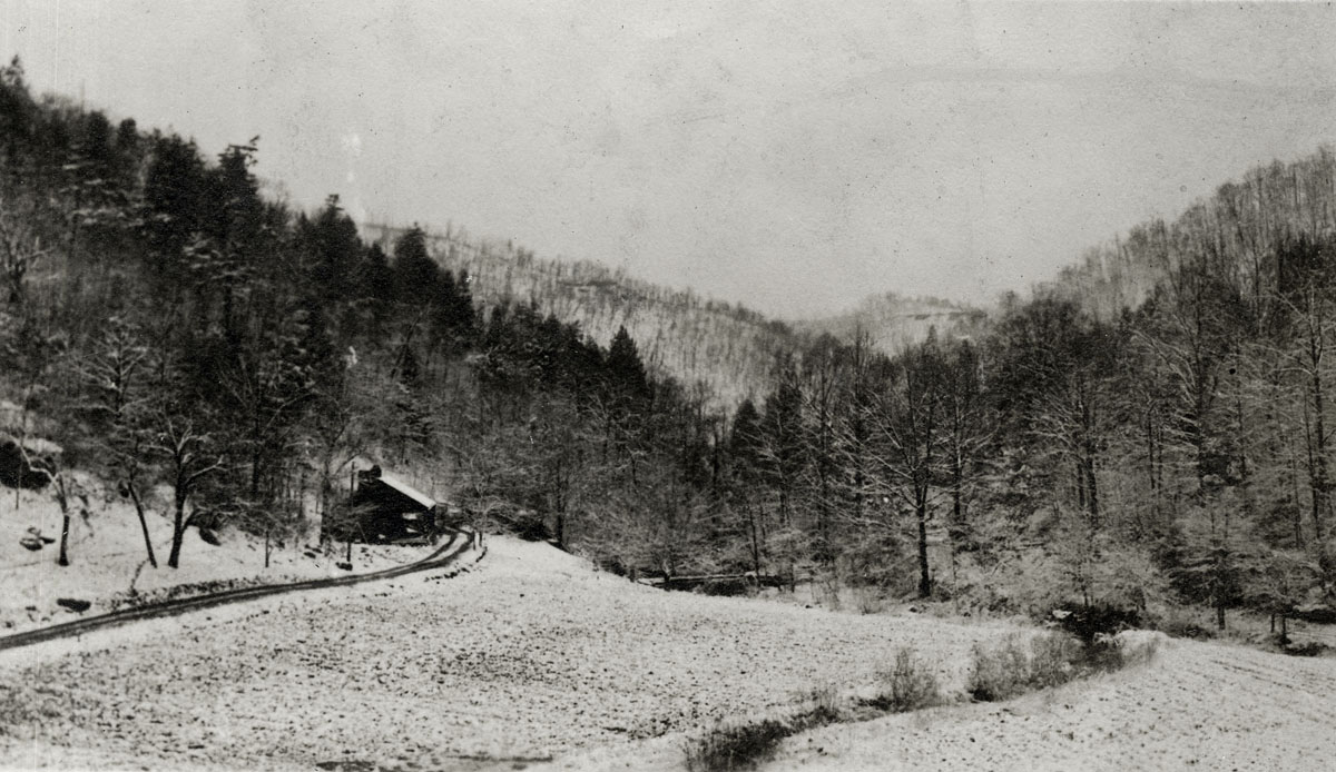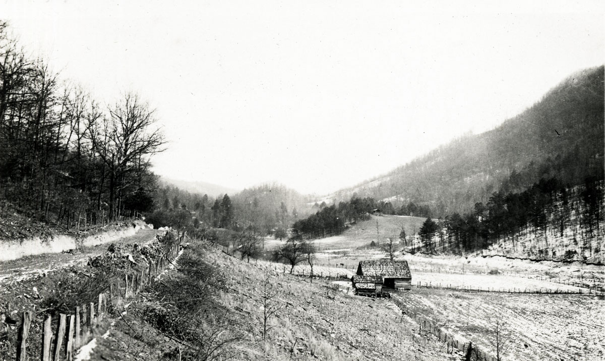 - Isaac’s Creek rockwork and field of cabbage in front of Laurel House I, with Aunt Sal’s Cabin in distance. cobb_alice_082