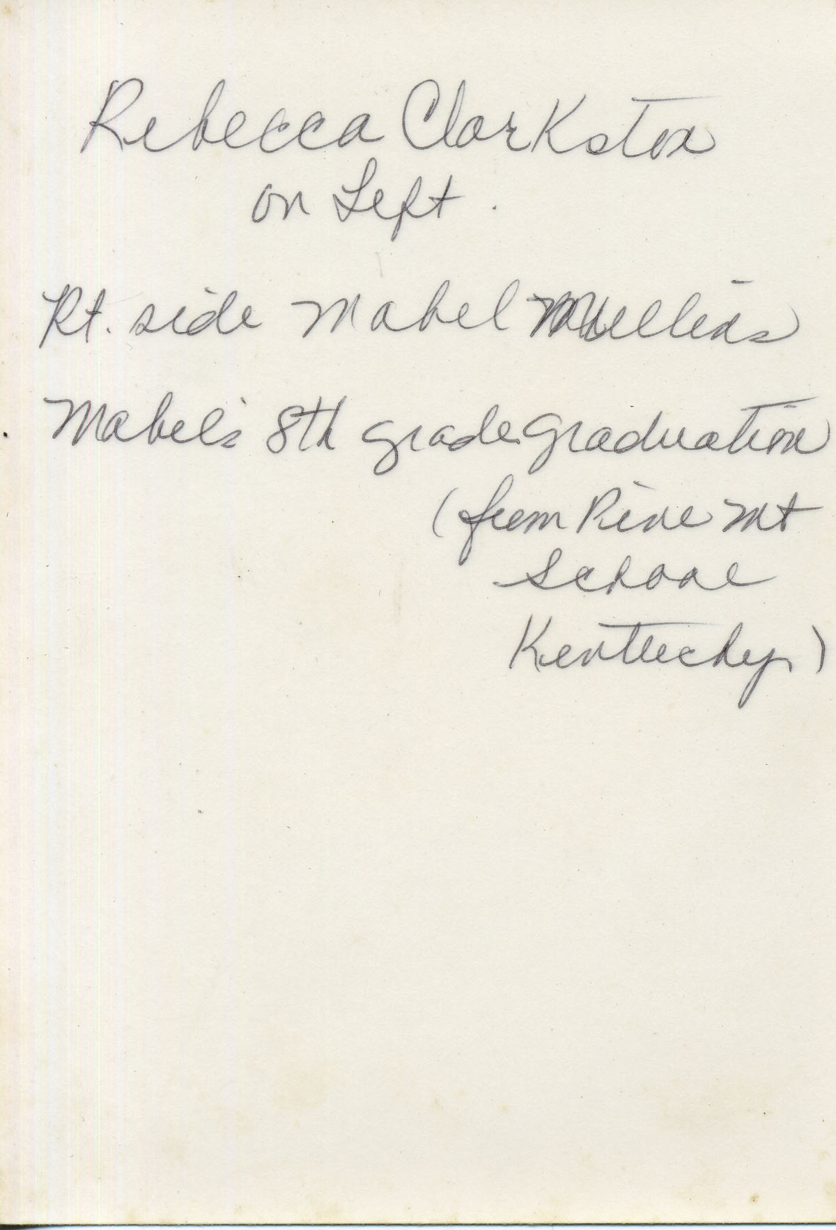 - Rebecca Clarkston on left. Rt. side, Mabel Mulllins. Mabel’s 8th grade graduation at Pine Mountain Settlement School. cobb_alice_086