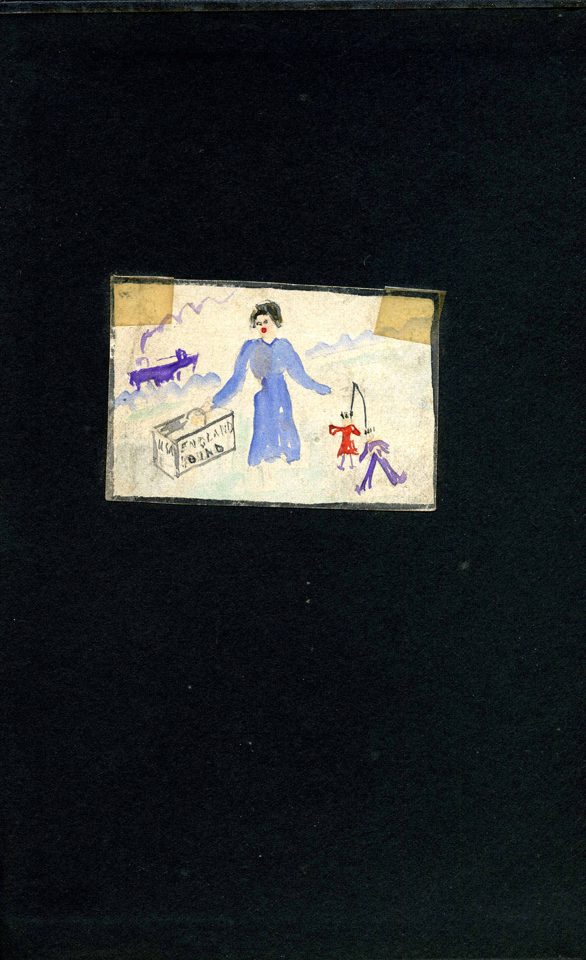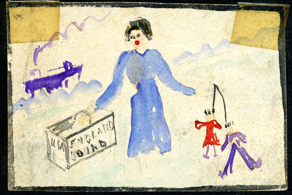 - “England Bound.” Drawing (by Cobb ?) on back cover of “Snaps” Album. Close up. cobb_alice_end2