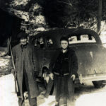 - Man with gun and young boy. in front of car in snow. [cobb_alice_021.jpg]