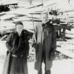 - Woman and man with gun in front of lumber. [cobb_alice_021.jpg]