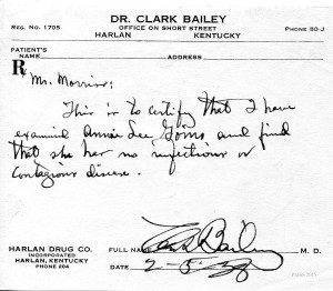 Annie Lee Goins Correspondence. Certification of good health by Dr. Bailey. [goins_a_015.jpg]