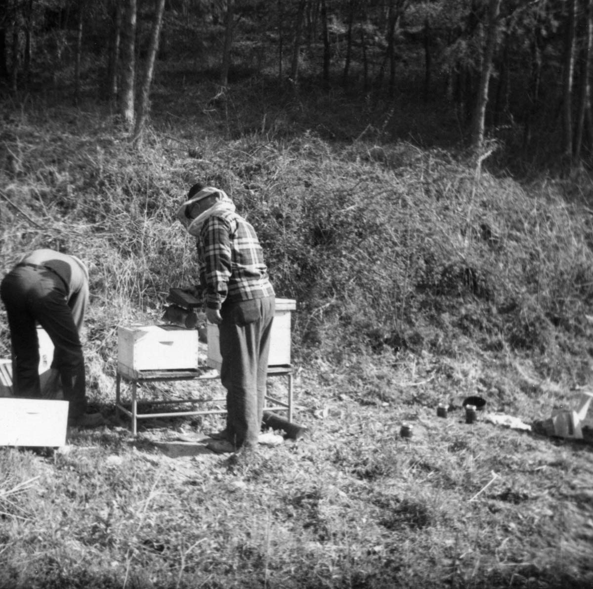 Bee keeping, 2 hives. VII 63 Life Work Maintenance, Farm, Grounds. c. 1960’s