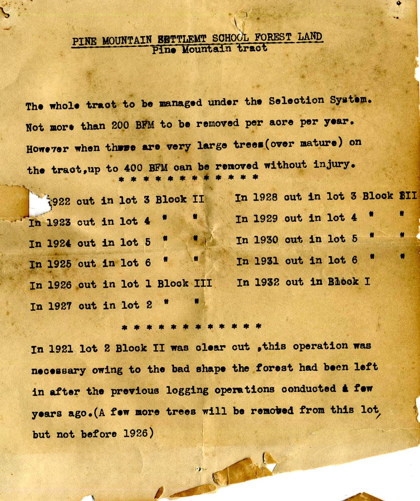 PINE MOUNTAIN SETTLEMENT SCHOOL FOREST LAND