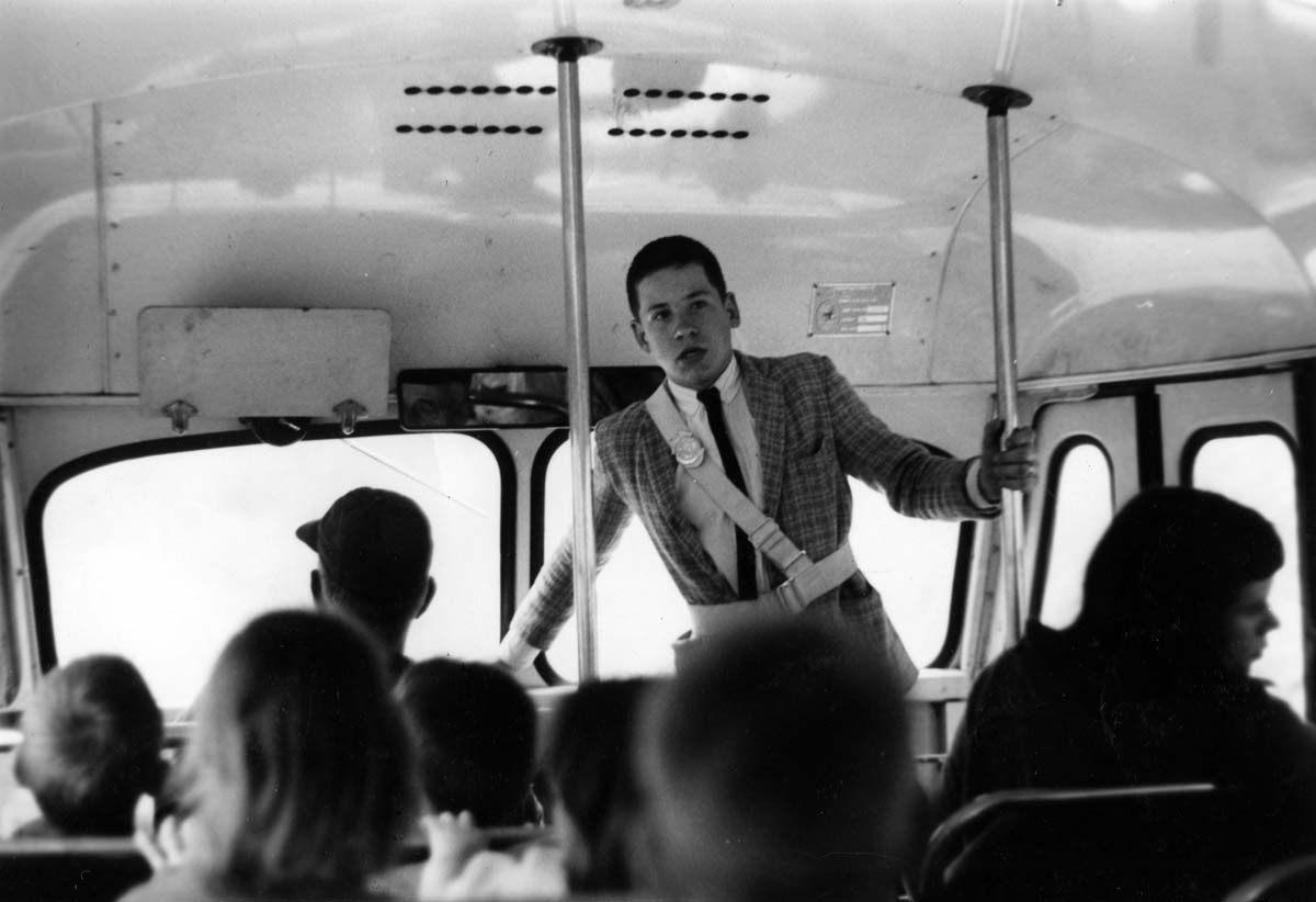 - Boarding bus at Draper building at PMSS. 55_Life and Work_Children and Classes_069