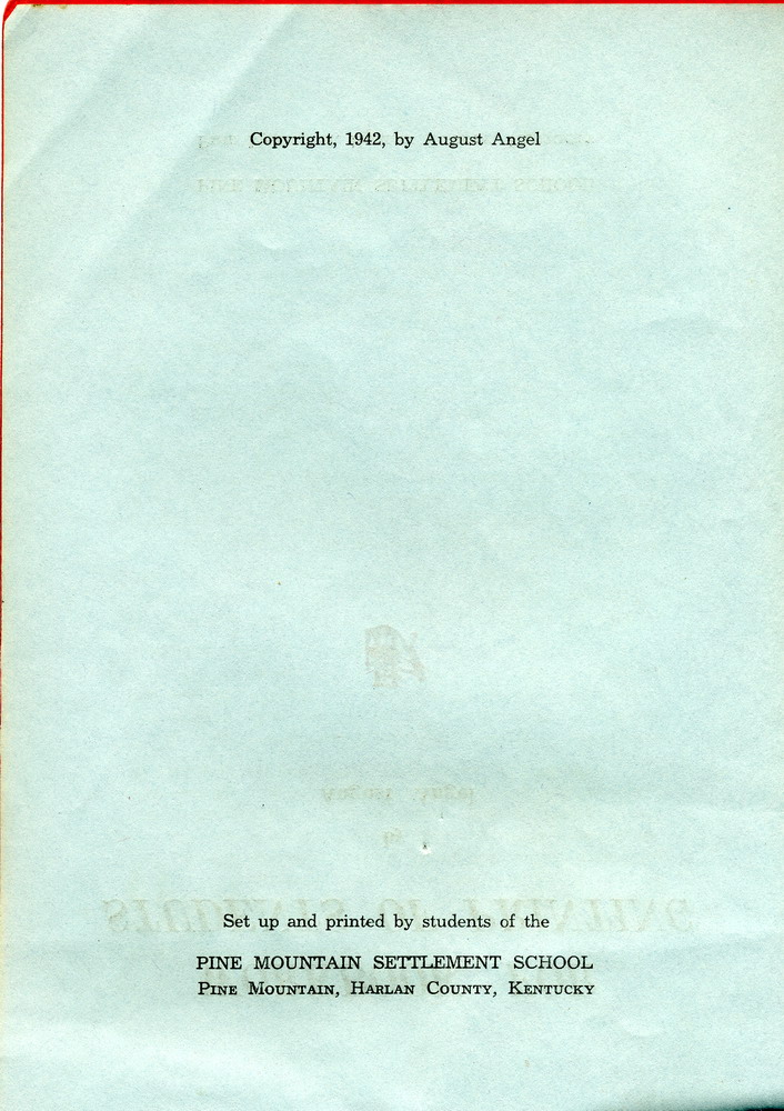 Sources Angel, August D. Trivia & Me: An Octogenarian Mirrors His Twentieth Century : a Tale of Decades of Capricious and Impulsive Acts That Produced Neither Polish nor Wealth but Ending in a Contented Lifestyle. London, KY: August David Angel, 2007. Print. Annual Report of the 1985 Homecoming, the official newsletter of Pine Mountain Association of Alumni and Friends. Pine Mountain, KY: Pine Mountain Settlement School,1985. Archival material. Angel, August. Workbook for Students of Printing. Pine Mountain, KY: Pine Mountain Settlement School, 1942. Archival material. Pine Mountain Settlement School Archives. Series 7: Director’s Reports – Reports to the Board of Trustees and Advisory Board of Pine Mountain Settlement School, Pine Mountain, KY. Archival material. Pine Mountain Settlement School Archives. PMSS Staff Database. Computer file. Spelman, John A. At Home in the Hills: Glimpses of Harlan County, Kentucky, Through the Media of Linoleum Block and the Woodcut. Pine Mountain, Ky: Pine Mountain Print Shop, 1939. Print. Wilson, E K. A Pine Mountain Study in Civics. Pine Mountain, KY: Pine Mountain Settlement School, 1937. Print. |