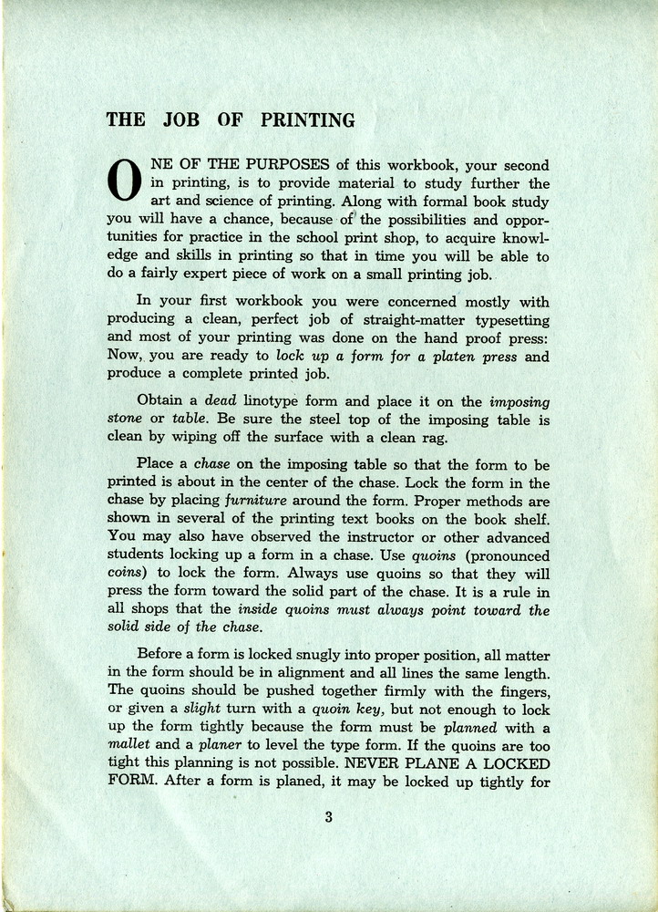 - Page 3 — Workbook for Students of Printing by August Angel, 1942. [angel_0081.jpg]