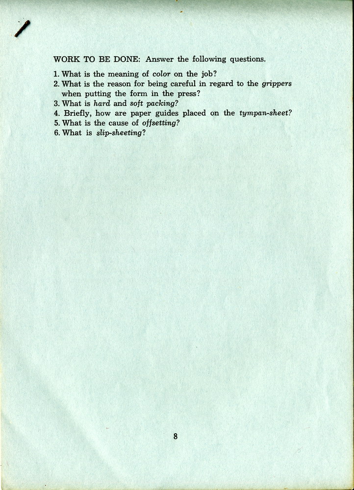 - Page 8 — Workbook for Students of Printing by August Angel, 1942. [angel_0121.jpg]