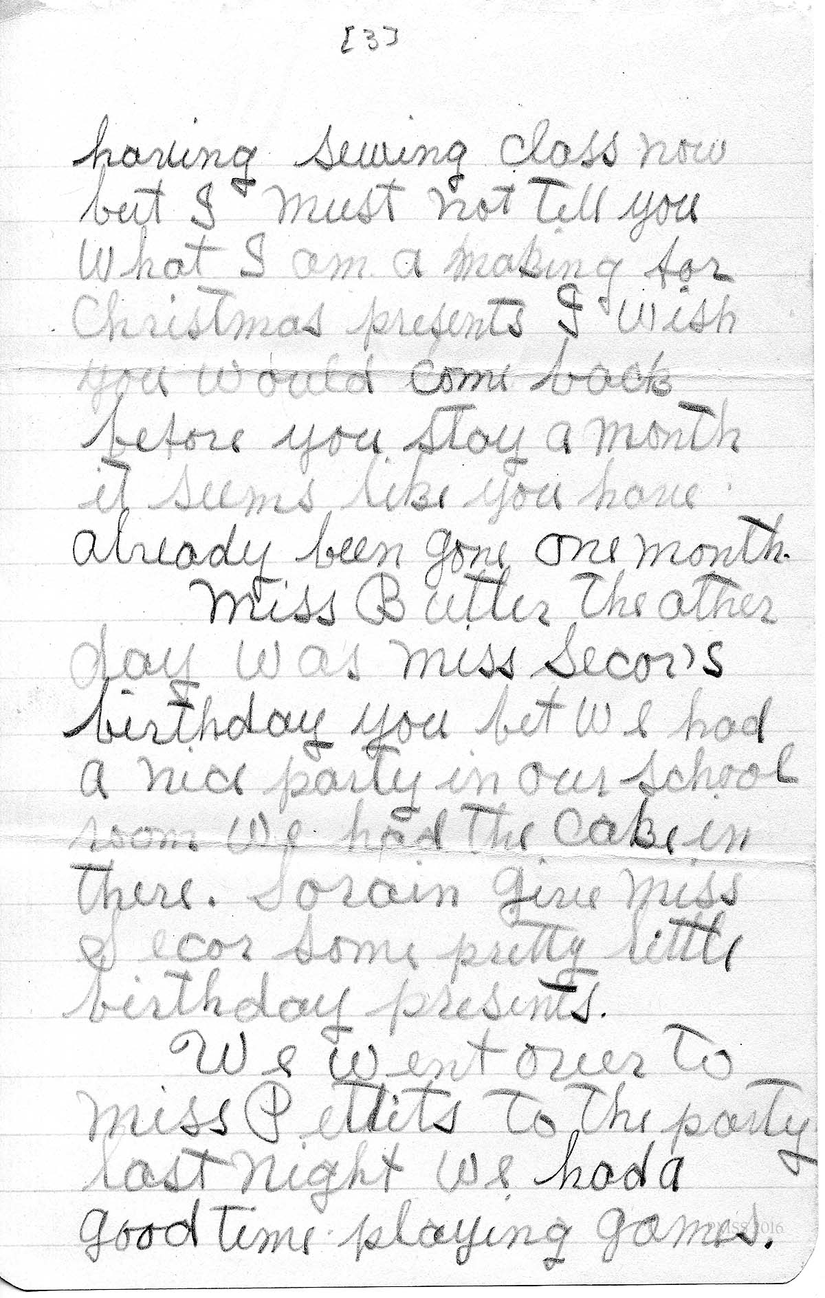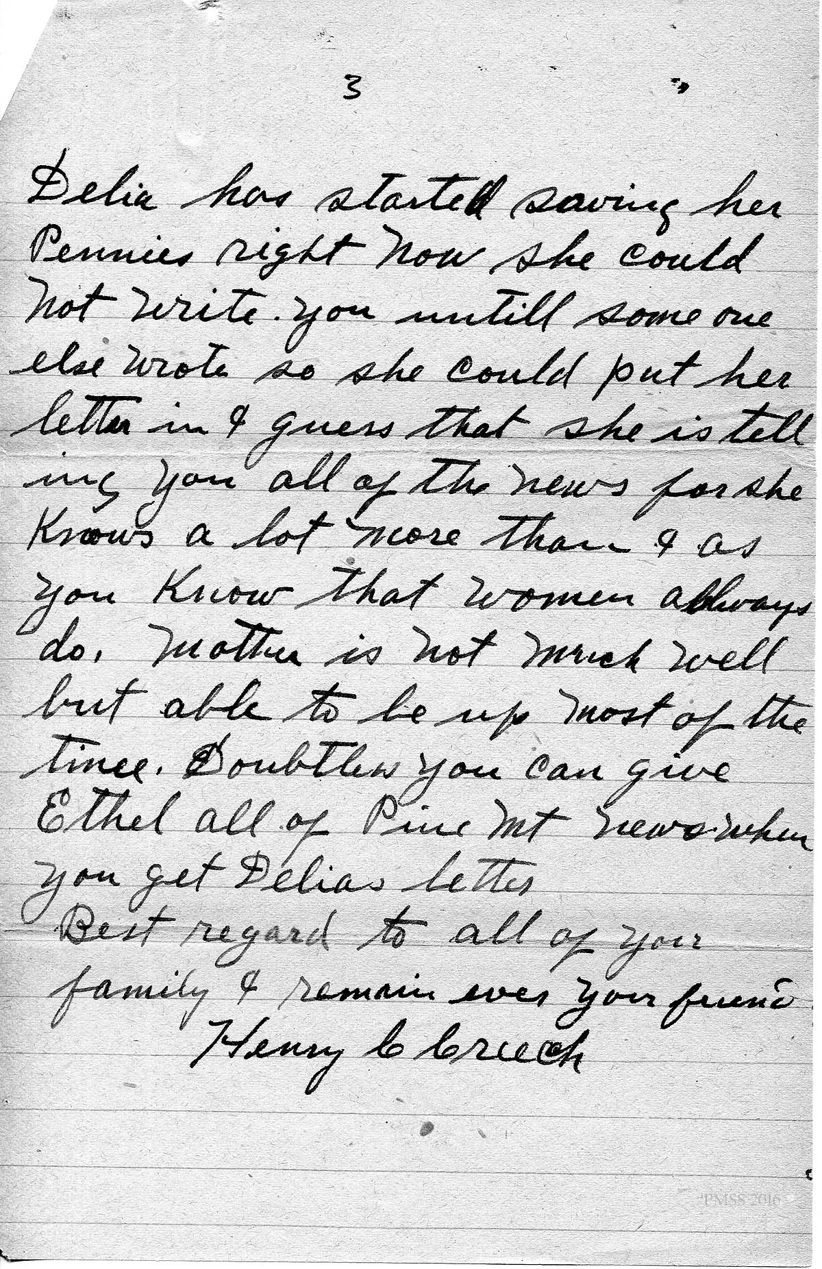 11. Elsie Creech to Miss Butler, May 22, 1916. “…Oma is going to a school every day….Little William bog burnt up May 11. William died…fell in the buckit of hot water.”