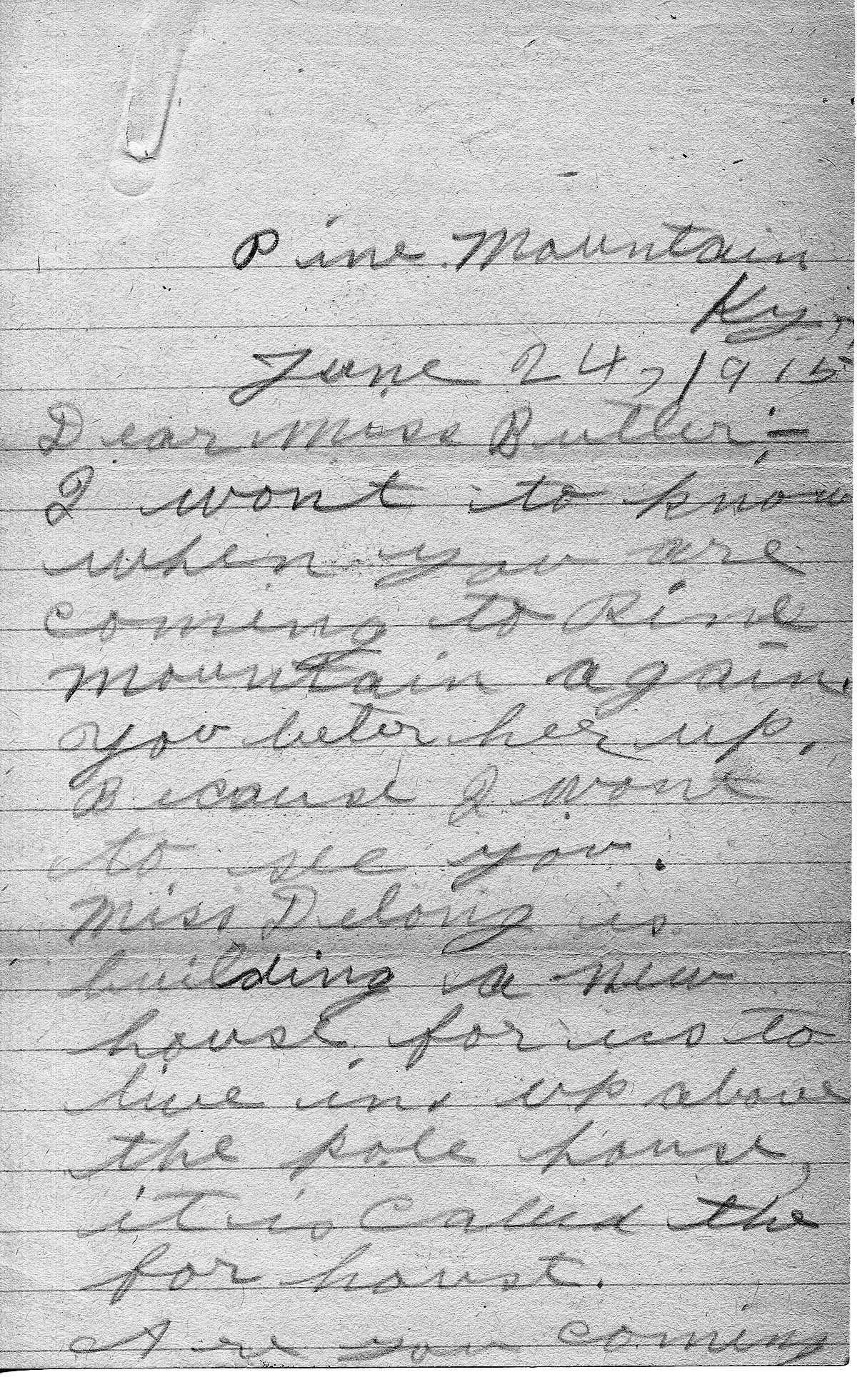 13. Henry C. Creech to Marguerite Butler, July 6, 1924. “I have been looking after Queen since you left as I did when you went over sea… Miss Medcalf rode her to Whitesburg and went to the blacksmith there to get a shoe fixed but, no, Queen would not let him tuch her. After half an hour she brought her back for me to fix up and you know that makes me kindly proud of myself….” Also mentions Miss Medcalf and Miss Smith at Line Fork and his wife, Delia. [For full translation of Henry Creech’s letter, go to EDUCATION Community Writing (13) Henry C. Creech.]