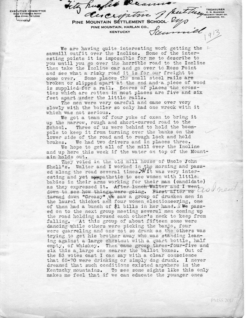 TAGS: Fitzhugh Lane; Pine Mountain Settlement School; sawmills; Katherine Pettit; Ethel de Long Zande;