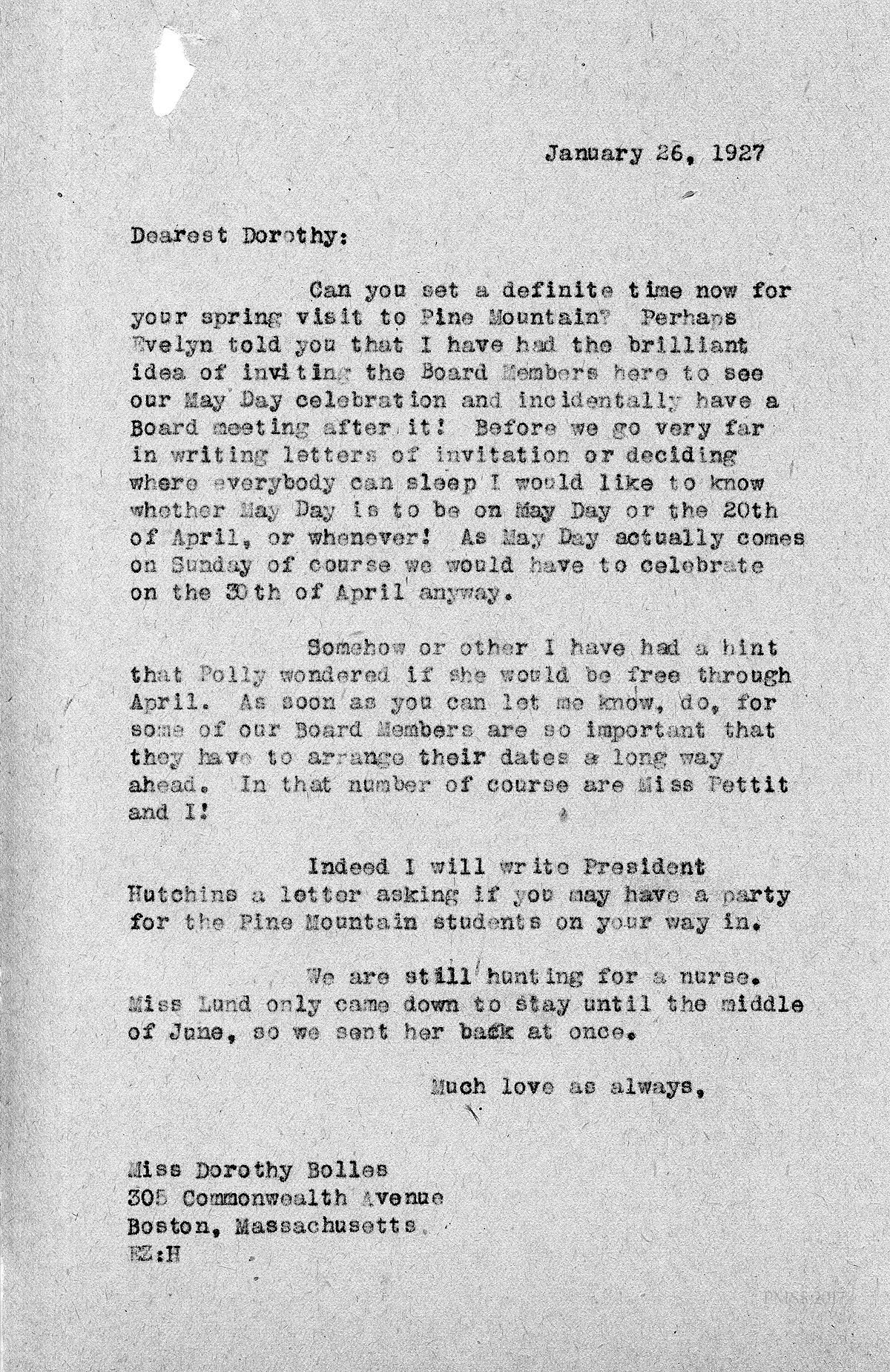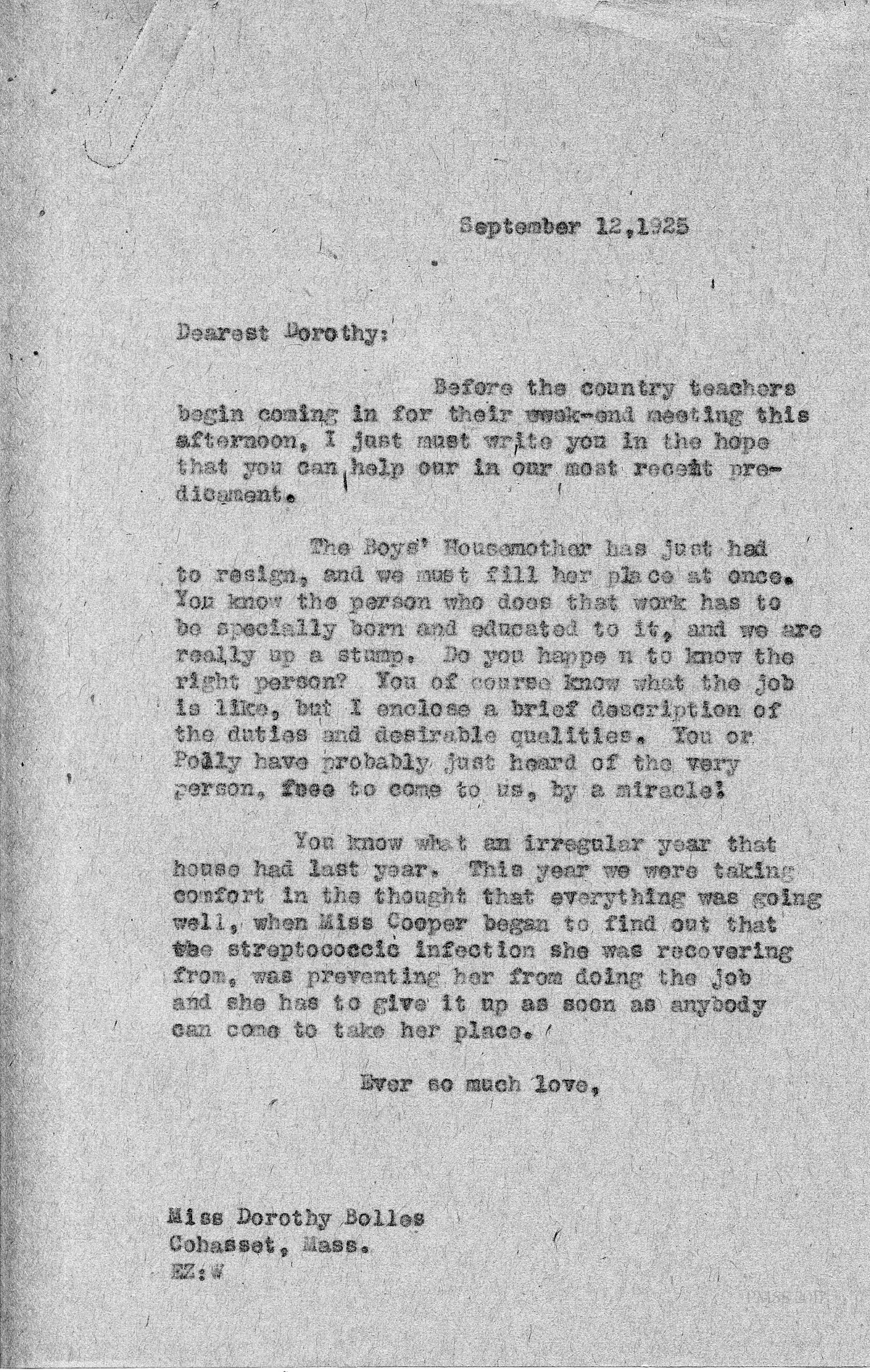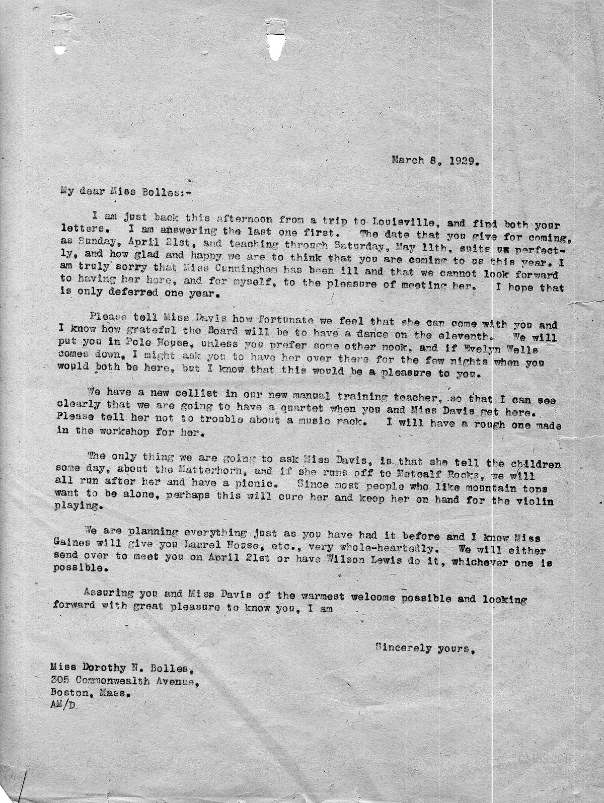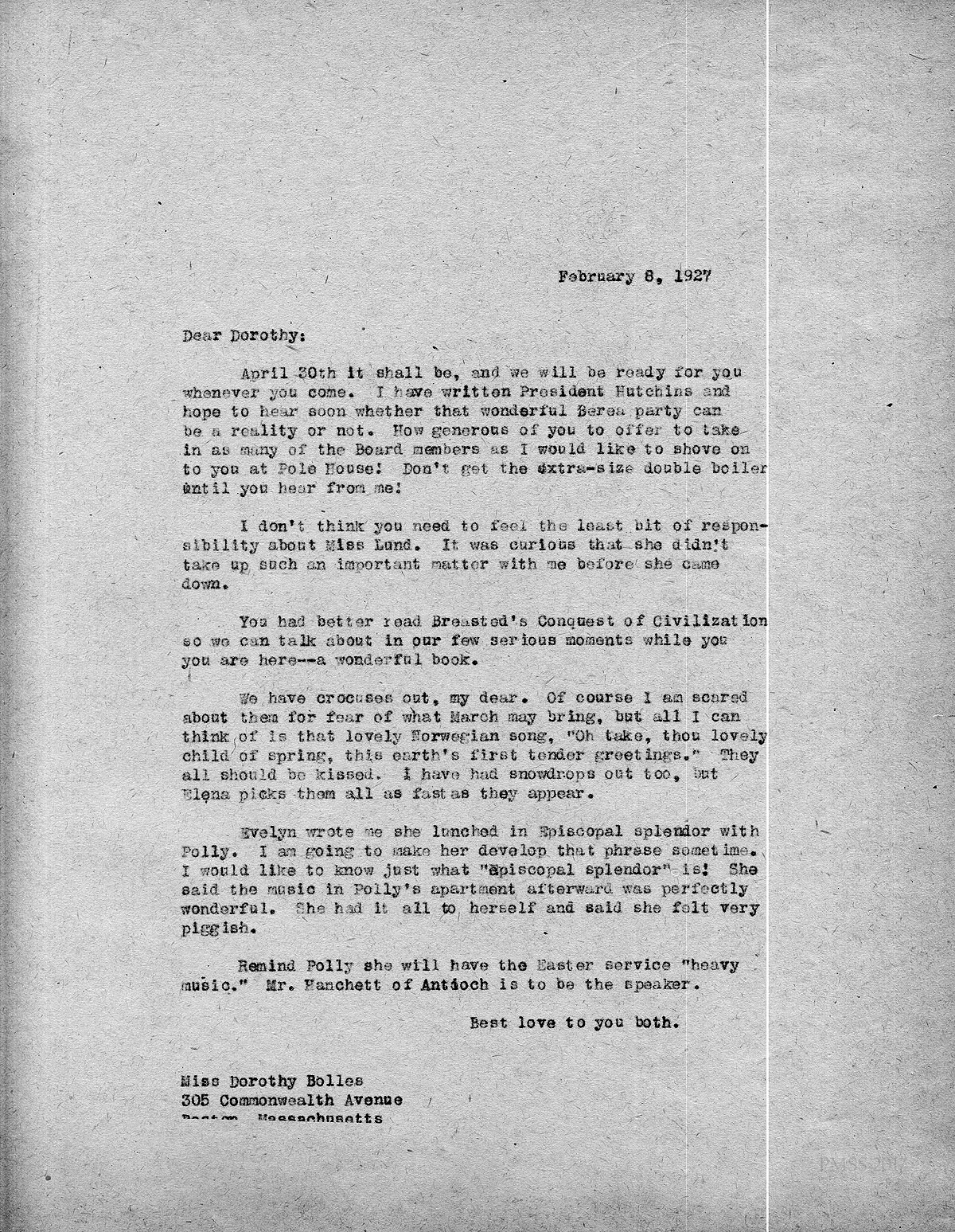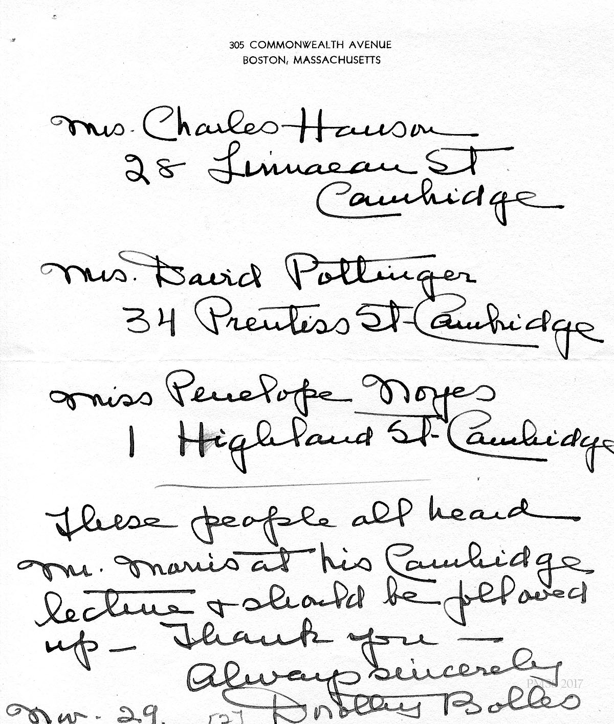 DOROTHY BOLLES CORRESPONDENCE GUIDE FOR PARTIAL TRANSCRIPTION.