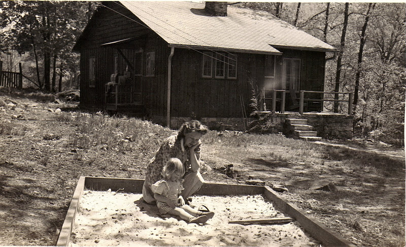 - Susie Hall Angel and daughter, Ann, in front of their home on PMSS campus, Jubilee House, 1943.