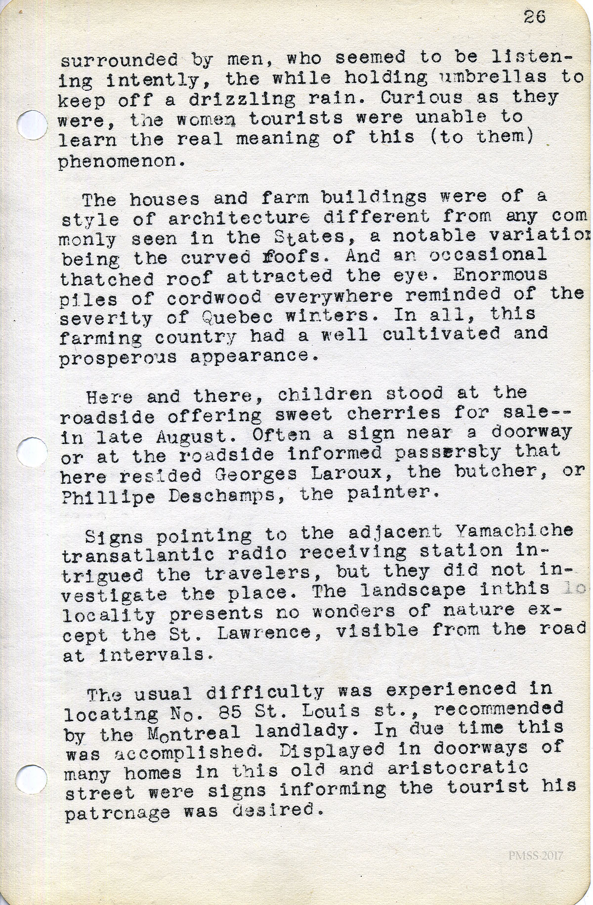 TAGS: Bertha Shepard “Little Journeys” II: Chien Chaud and Culture Seekers on the King’s Highway; Bertha Shepard; “Little Journeys”; chien chaud; Canada; King’s Highway; Ontario; HWY #23; Labrida Handy; Chester Hunt; automobile travel; tourism; Kings Highway; Maritime Provinces; Titusville, PA; Buffalo, NY; Niagra Falls; Burning Springs; Hamilton, OH; Toronto, Canada; Zebulon Pike; Ottawa; Rideau Lake; Ottawa Parliament; Wellington Arms; Memorial Chamber of Peace Tower; Montreal; St. Lawrence River; McGill University; Notre Dame des Victories; Muse Historique Canadien; Canadian elections; St. Hilaire; St. Hyacinthe; St. Jean; Rouse’s Point;Lake Champlain; Adirondacks; Old Forge; Remsen; Baron von Steuben; Grman-American citizens; James Fennimore Cooper; Cooperstown; baseball; Otsego Lake; Unadilla; Frederick T. Hayes 1808-1894; Elmyra, NY; Mark Twain; Allegheny Mountains; PA; Denton Hill; Roosevelt Highway; Port Allegheny;