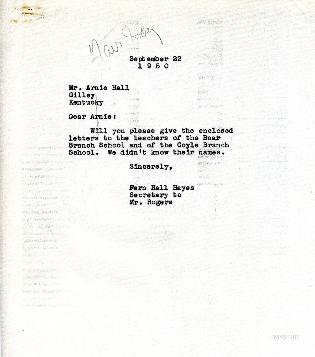 - Arnie Hall corresp 1950 Fair Day