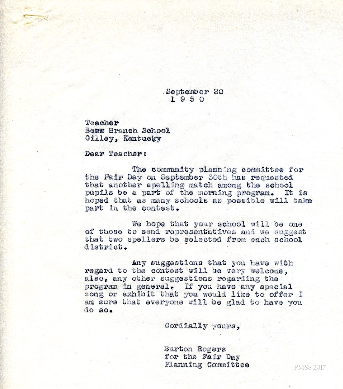 - Gladys Walden corresp 1950 Fair Day